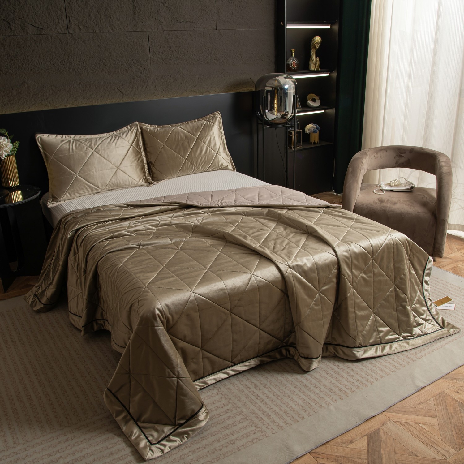 Велюровое покрывало в клетку OVL030