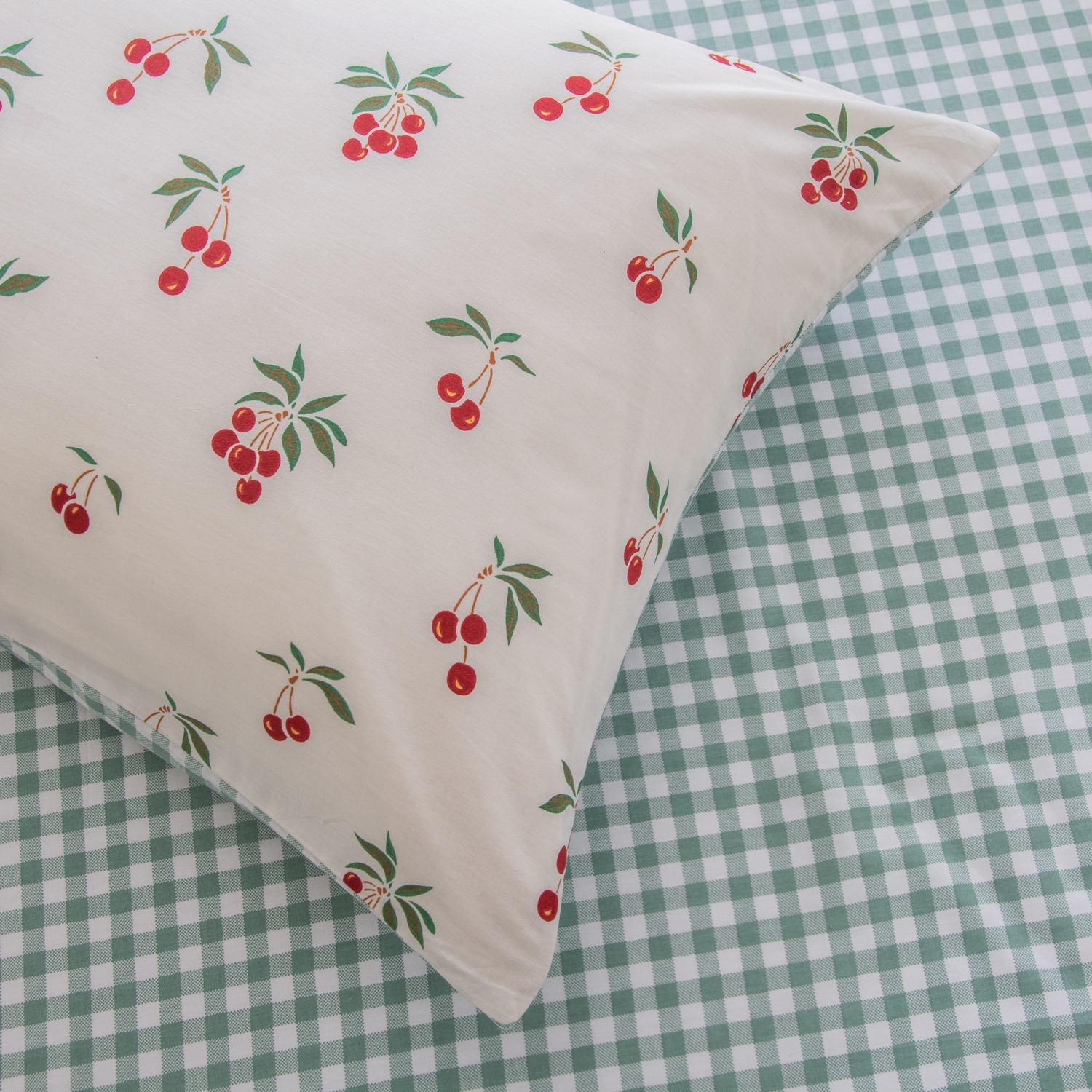 Ткань компаньон: Наволочки с разных сторон разной расцветки, пододеяльник с разных сторон разного цвета, простыня такого же цвета, как низ пододеяльника.