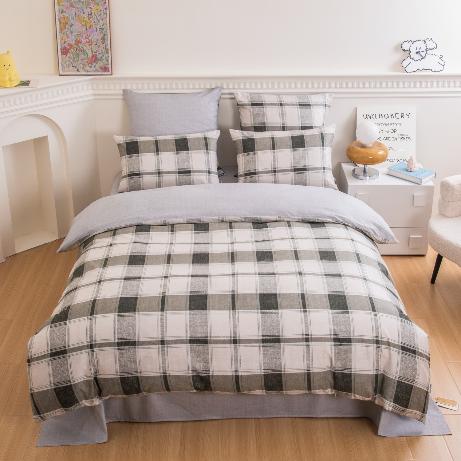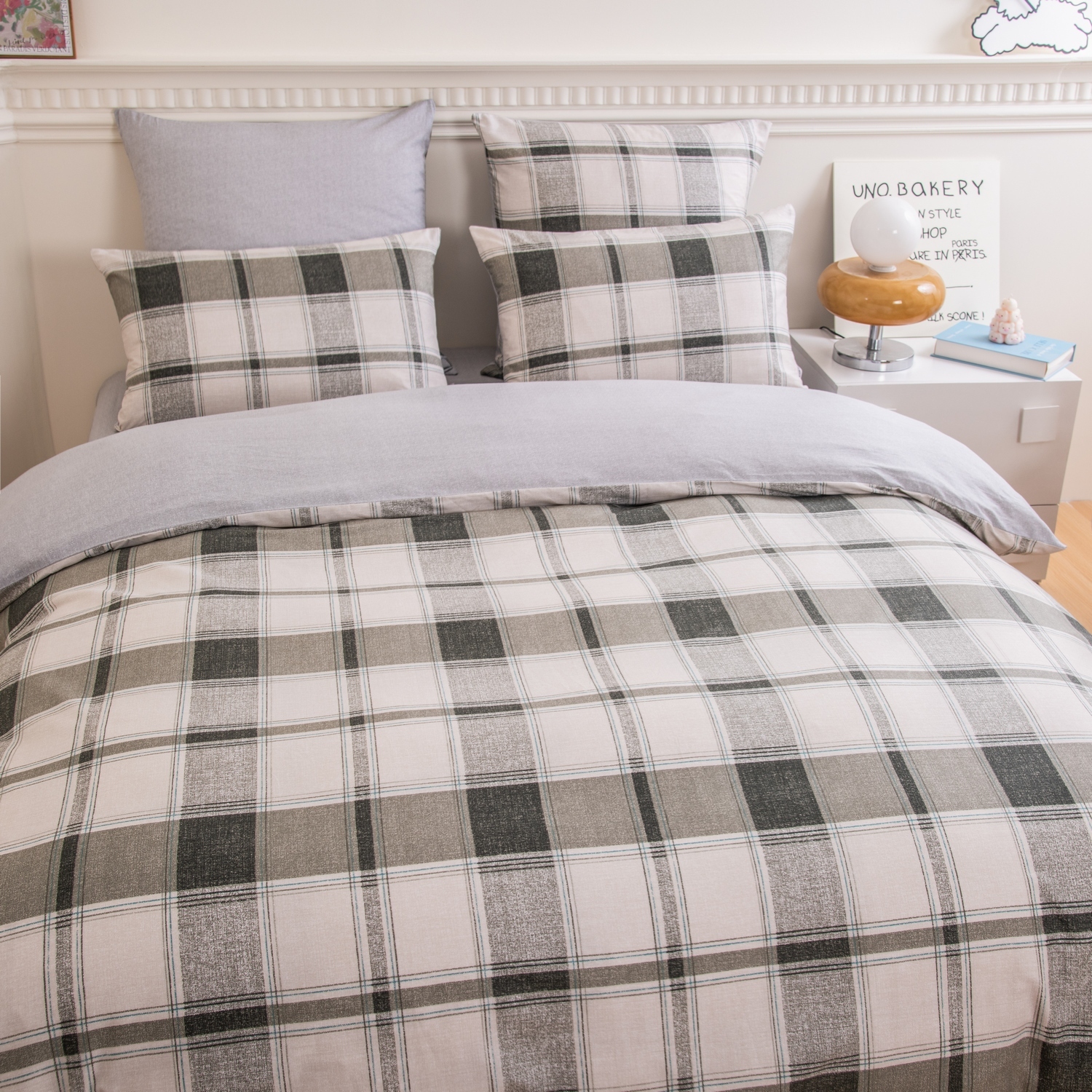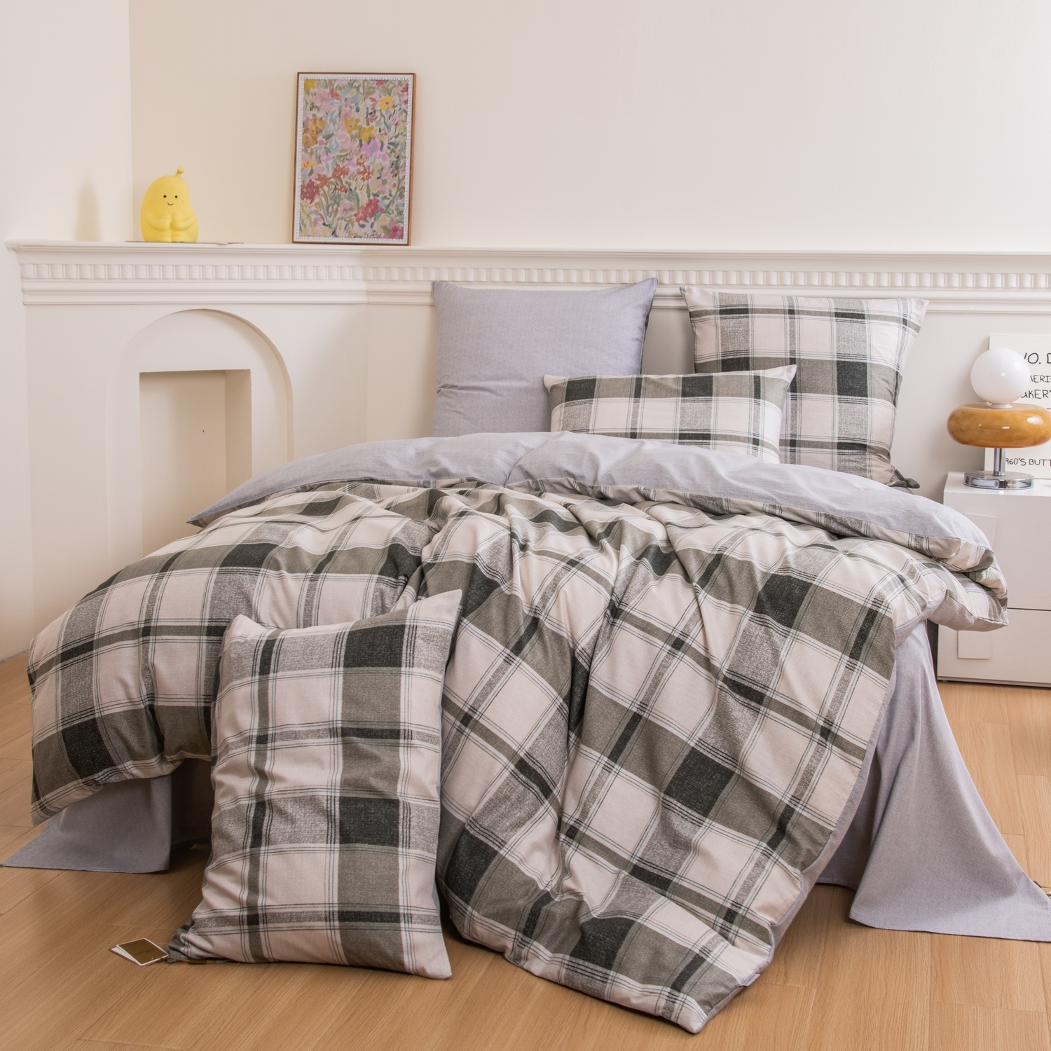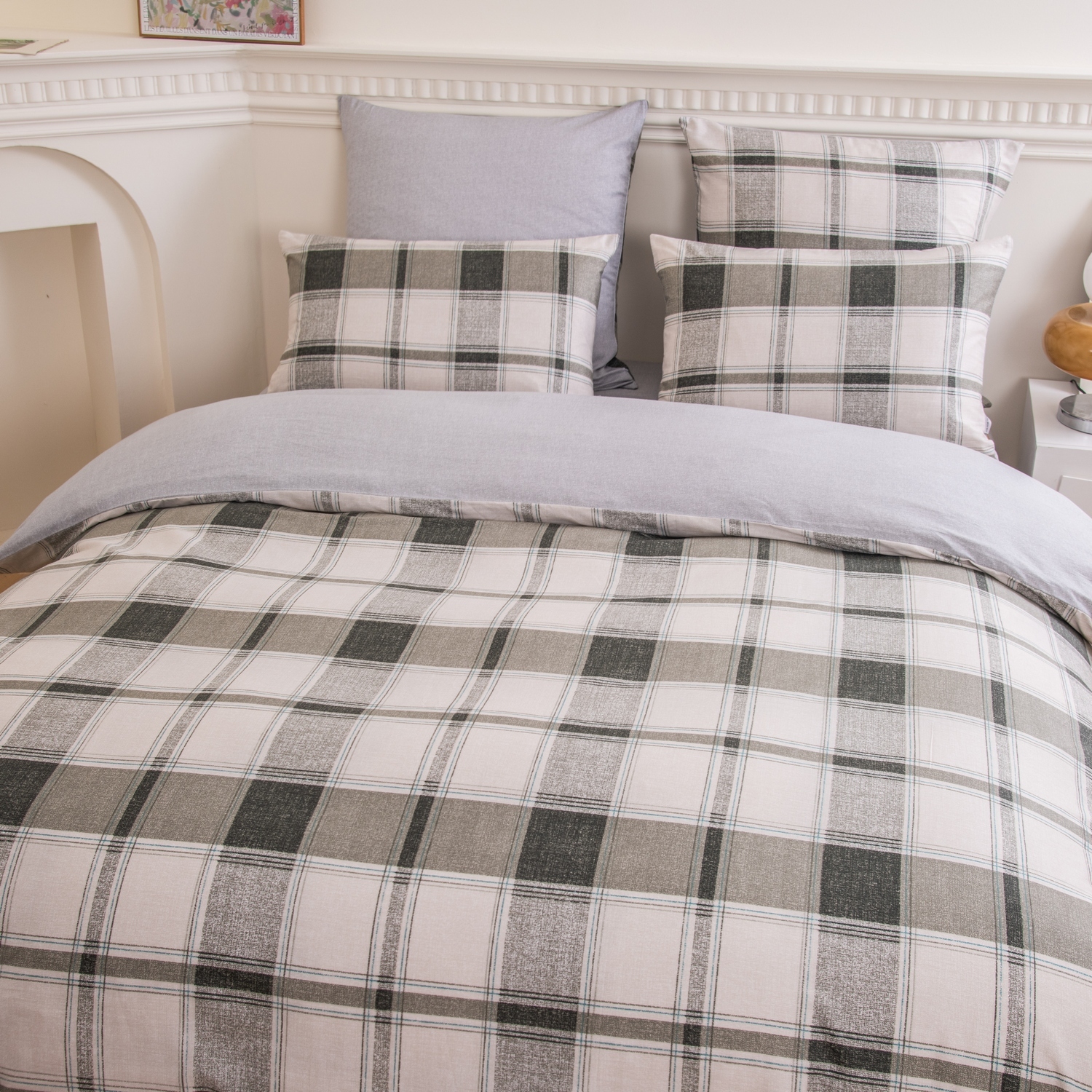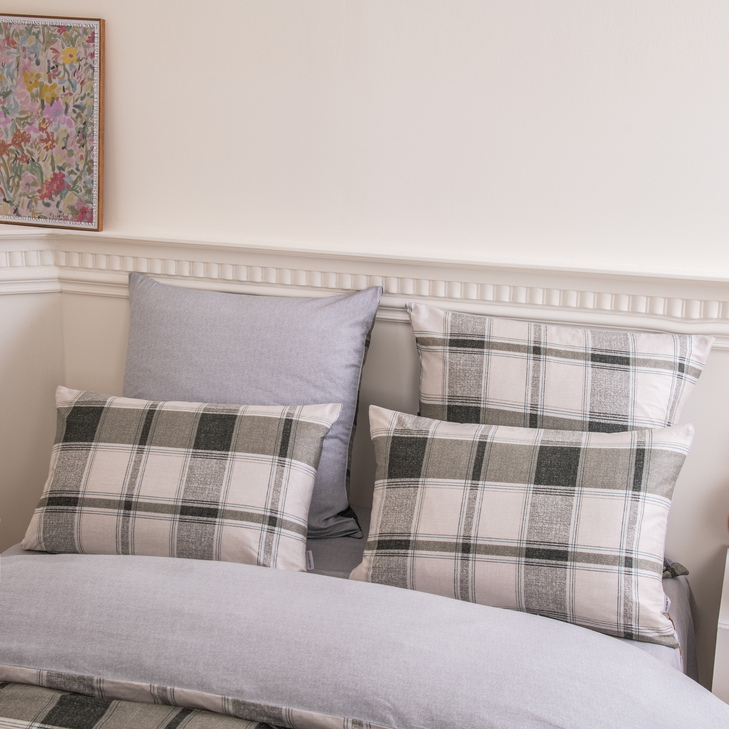 Ткань компаньон: Наволочки с разных сторон разной расцветки, пододеяльник с разных сторон разного цвета, простыня такого же цвета, как низ пододеяльника.