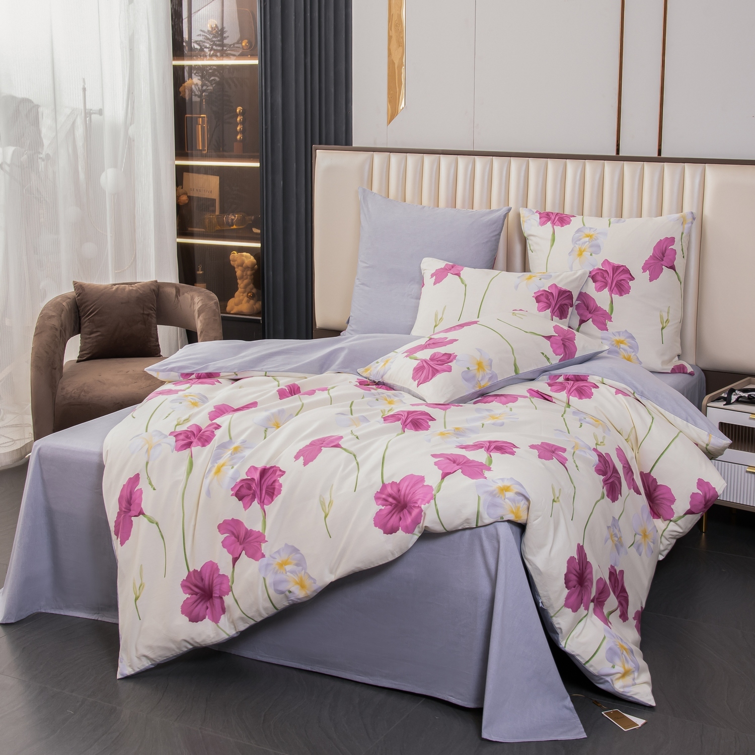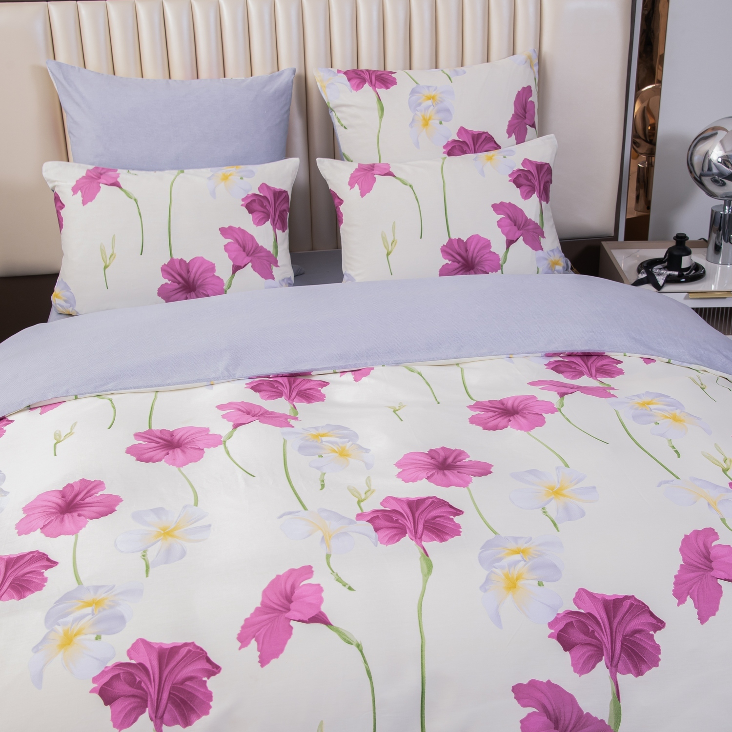 Ткань компаньон: Наволочки с разных сторон разной расцветки, пододеяльник с разных сторон разного цвета, простыня такого же цвета, как низ пододеяльника.