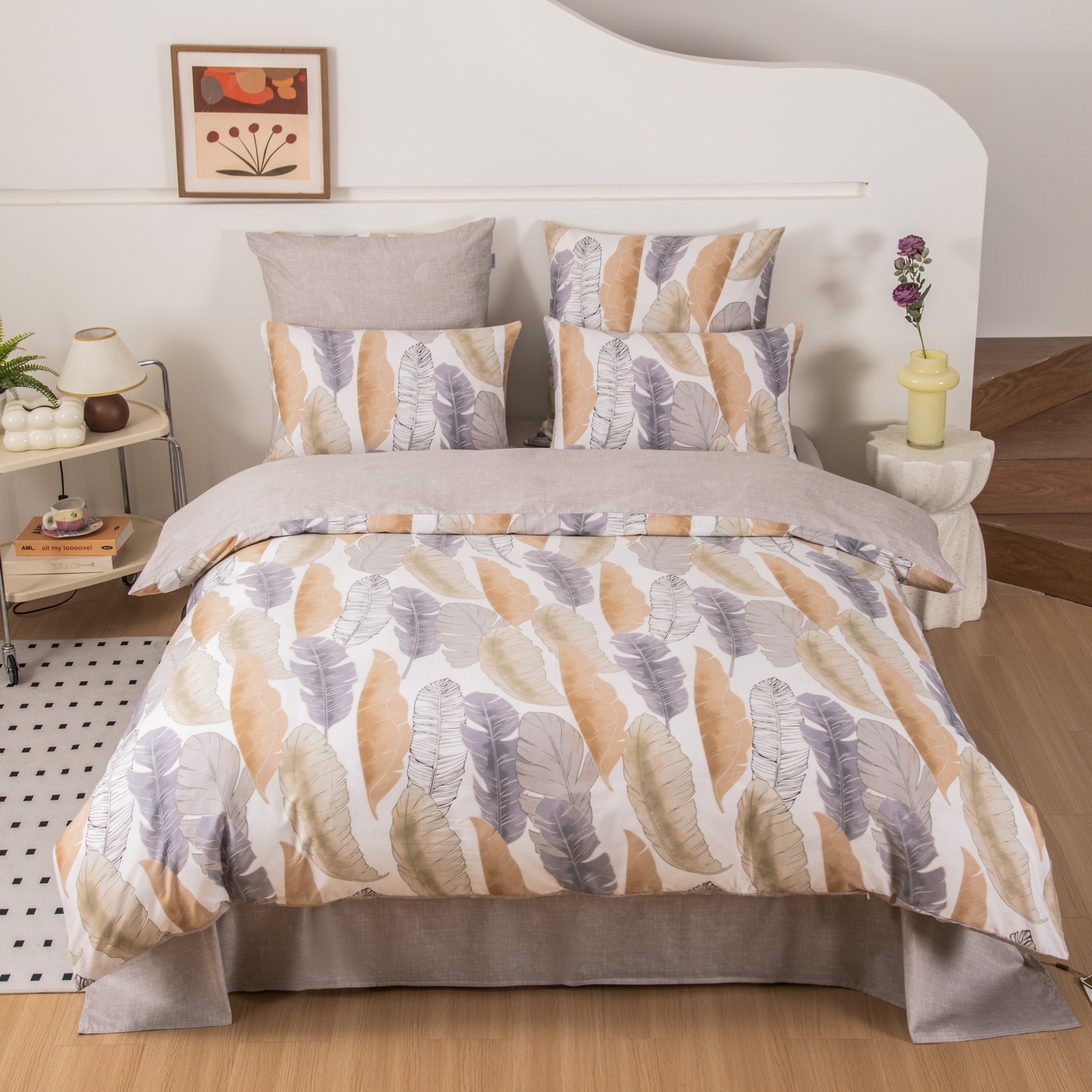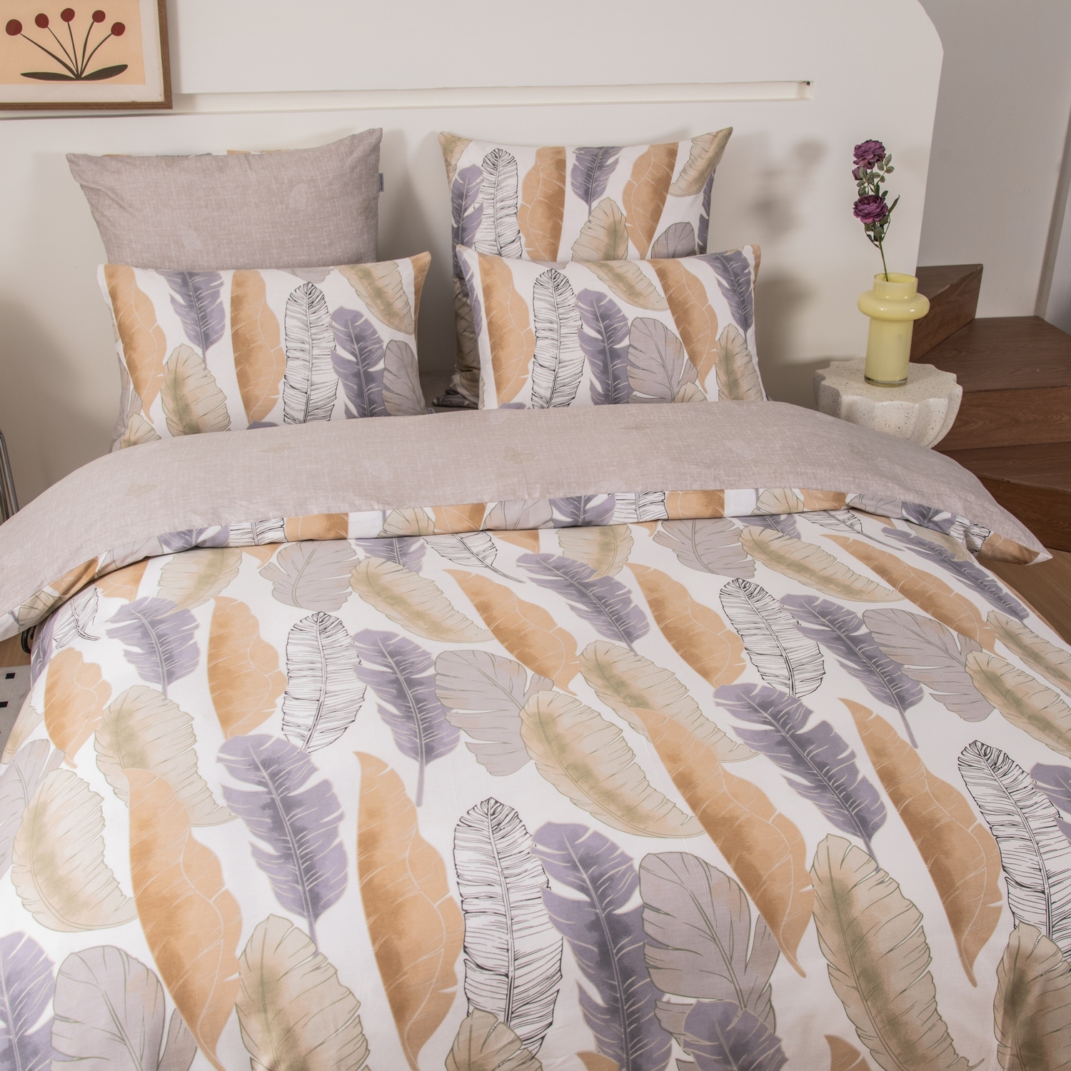 Ткань компаньон: Наволочки с разных сторон разной расцветки, пододеяльник с разных сторон разного цвета, простыня такого же цвета, как низ пододеяльника.