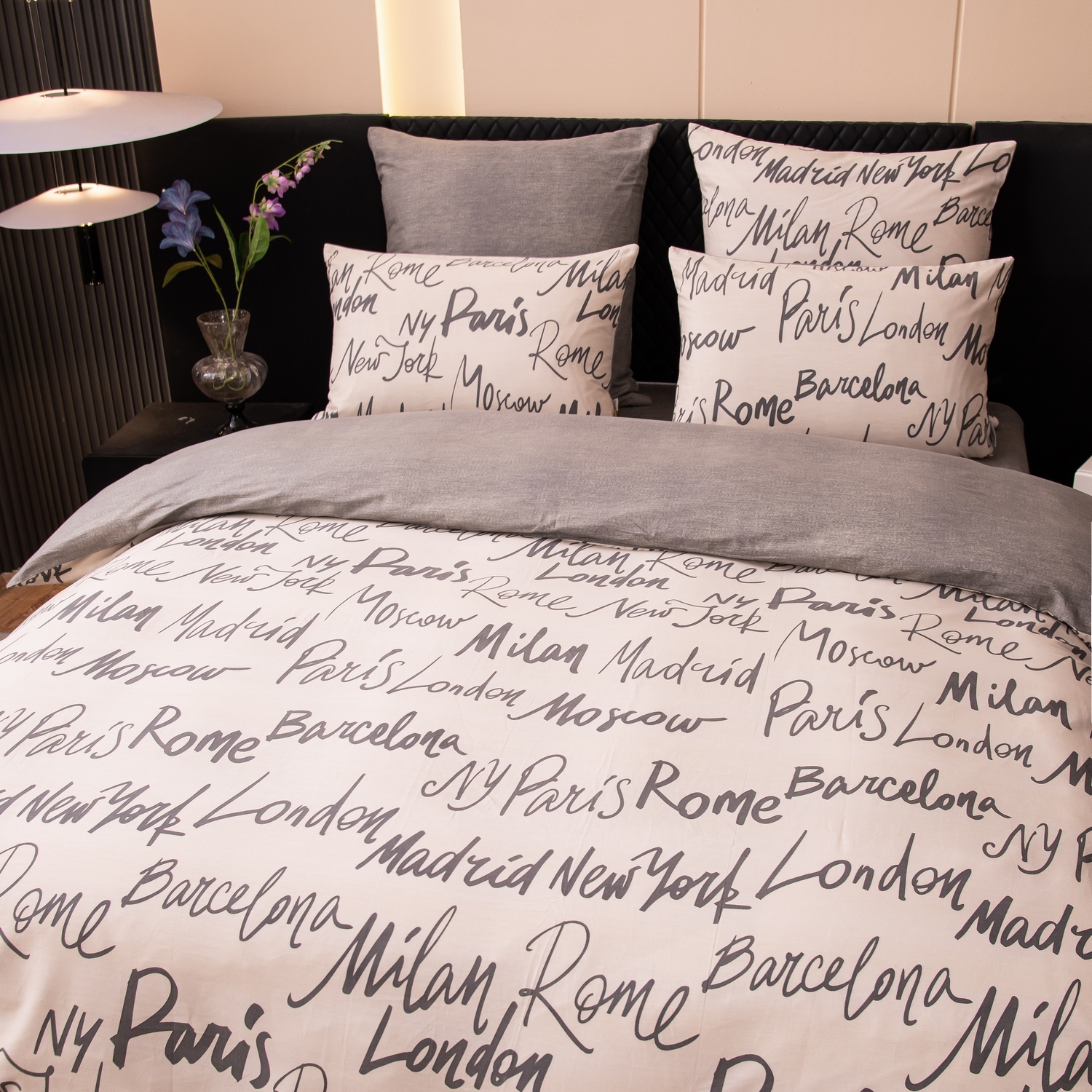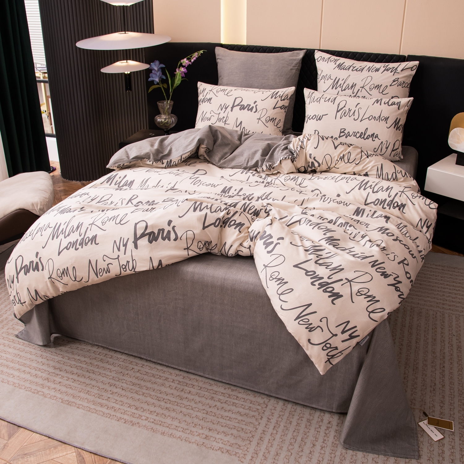 Ткань компаньон: Наволочки с разных сторон разной расцветки, пододеяльник с разных сторон разного цвета, простыня такого же цвета, как низ пододеяльника.