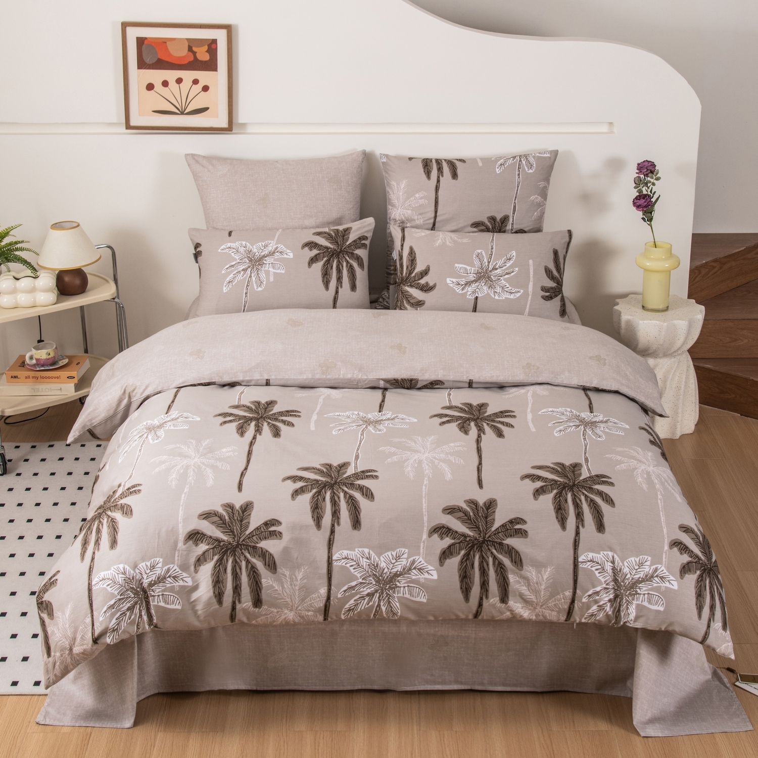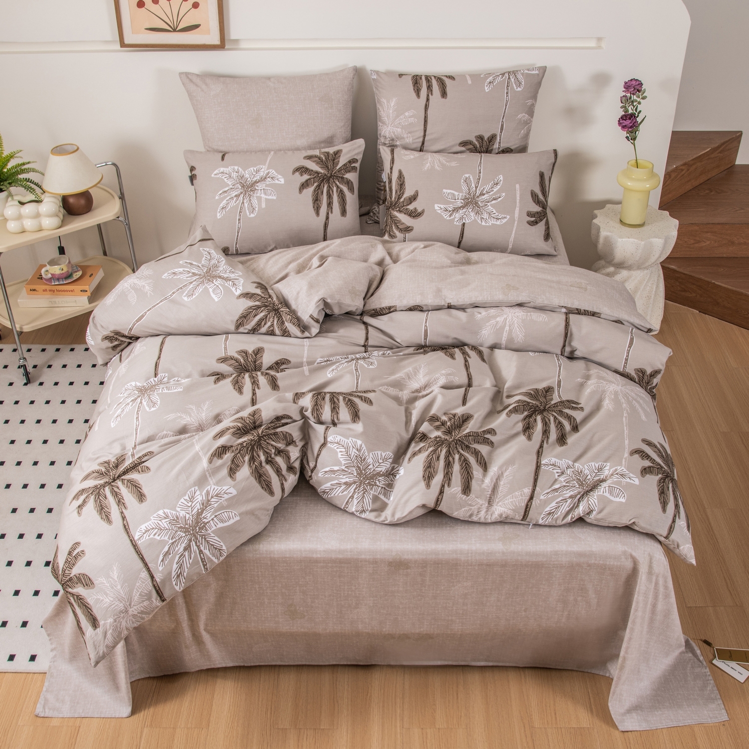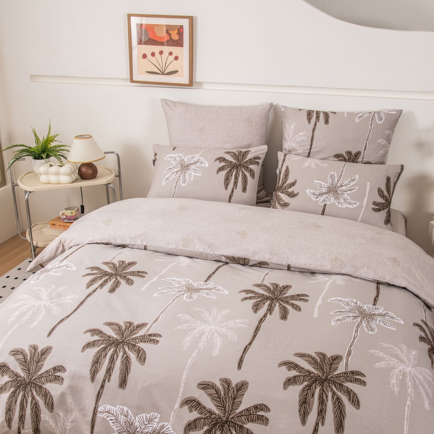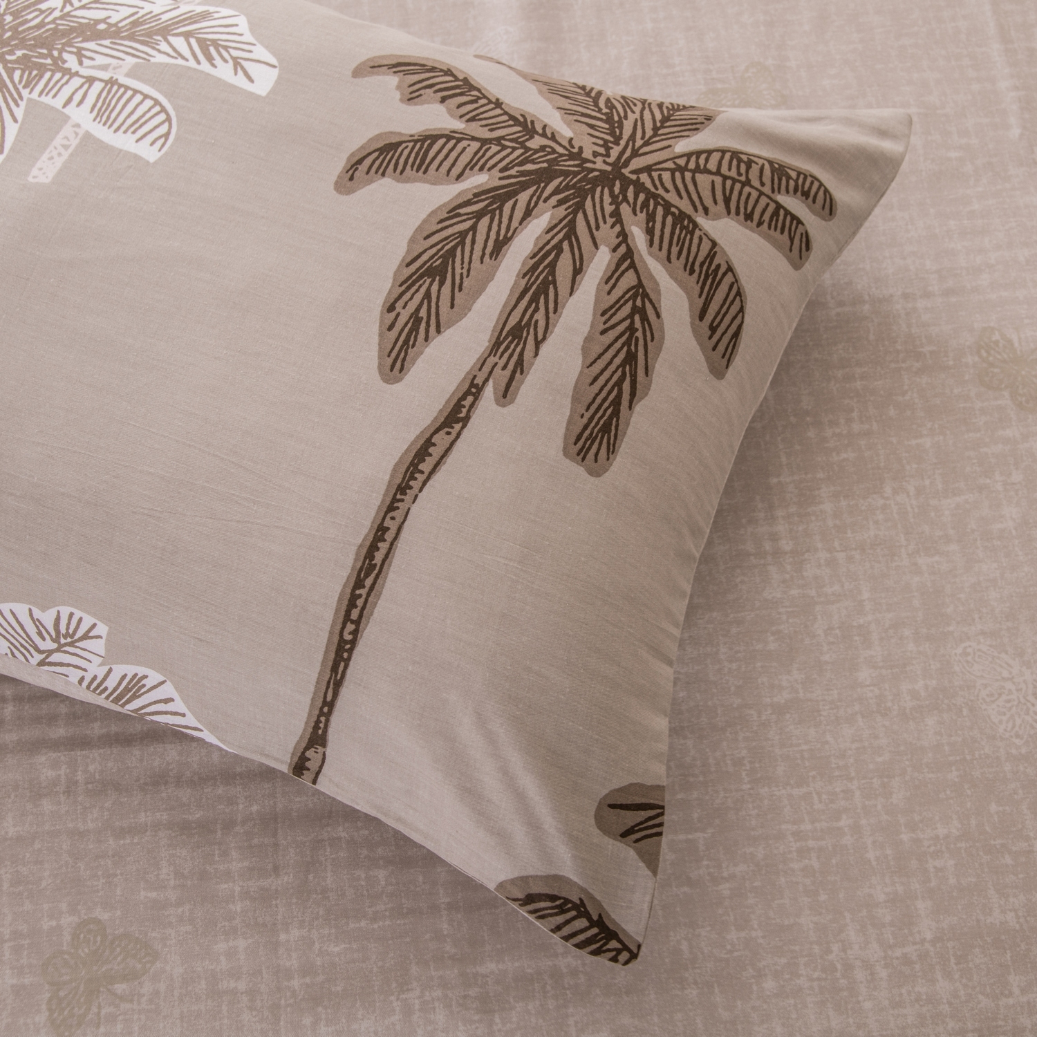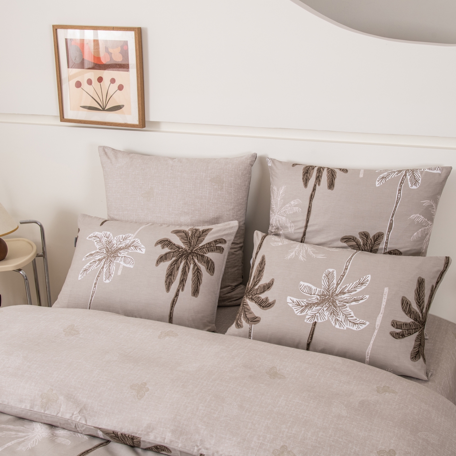 Ткань компаньон: Наволочки с разных сторон разной расцветки, пододеяльник с разных сторон разного цвета, простыня такого же цвета, как низ пододеяльника.