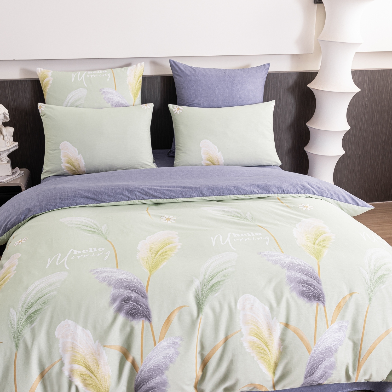 Простынь сшита из целого полотна без шва посередине, а большие размеры простыни решают проблему с заправкой постели.