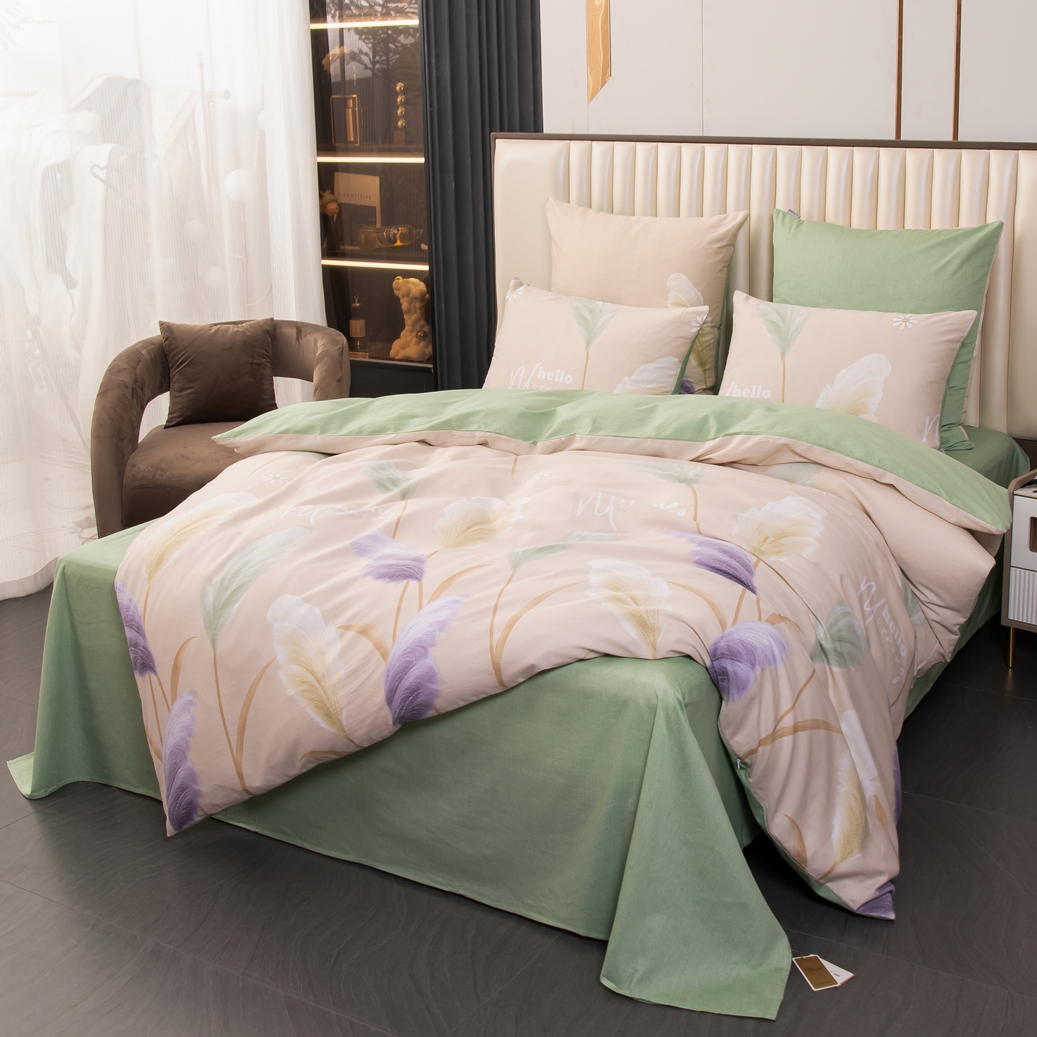 Простынь сшита из целого полотна без шва посередине, а большие размеры простыни решают проблему с заправкой постели.