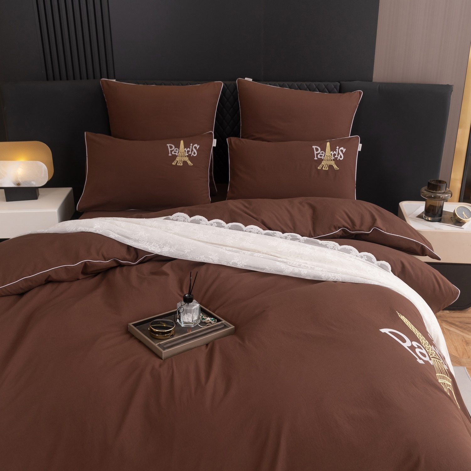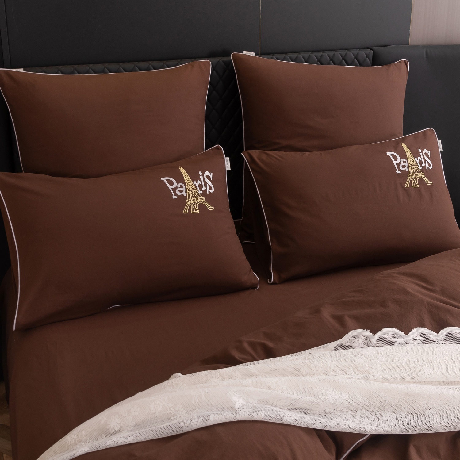 Пододеяльник и наволочки: Украшены вышивкой и кантом по периметру