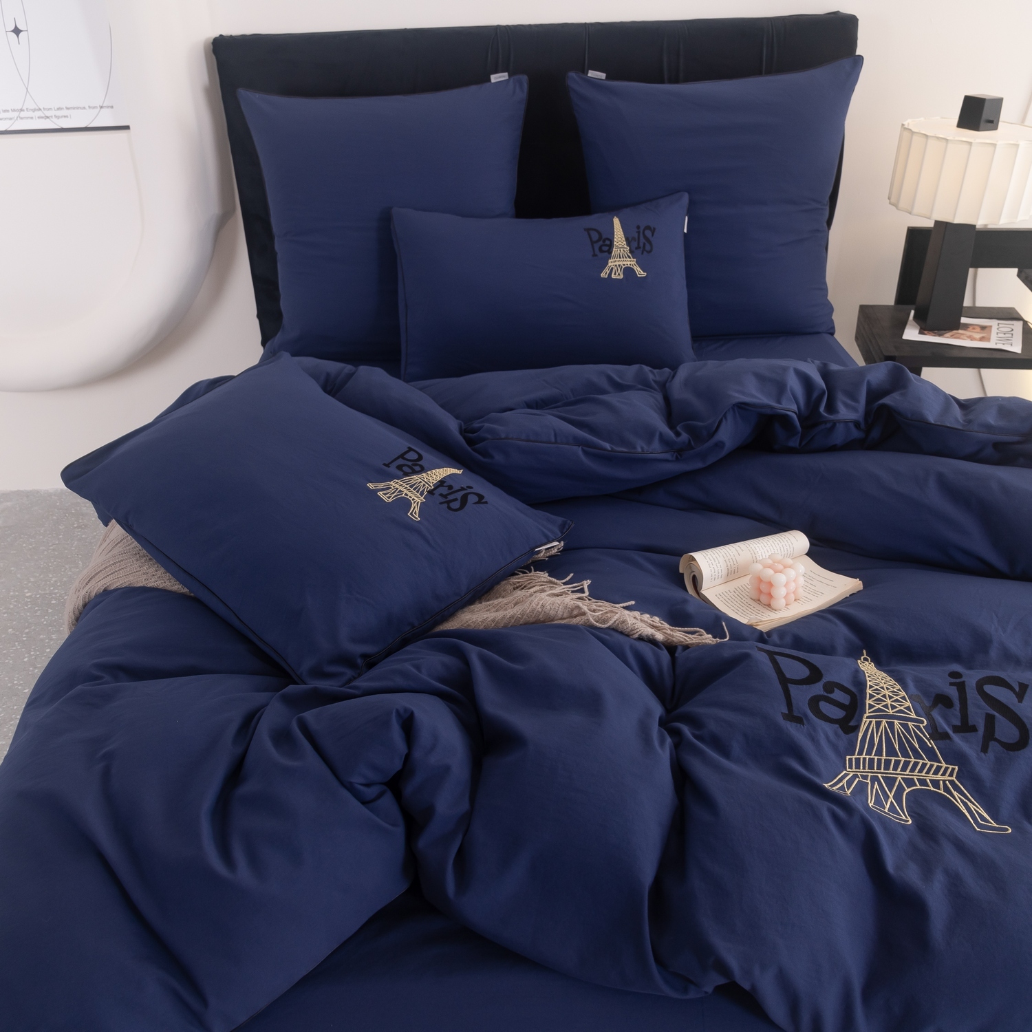 Пододеяльник и наволочки: Украшены вышивкой и кантом по периметру