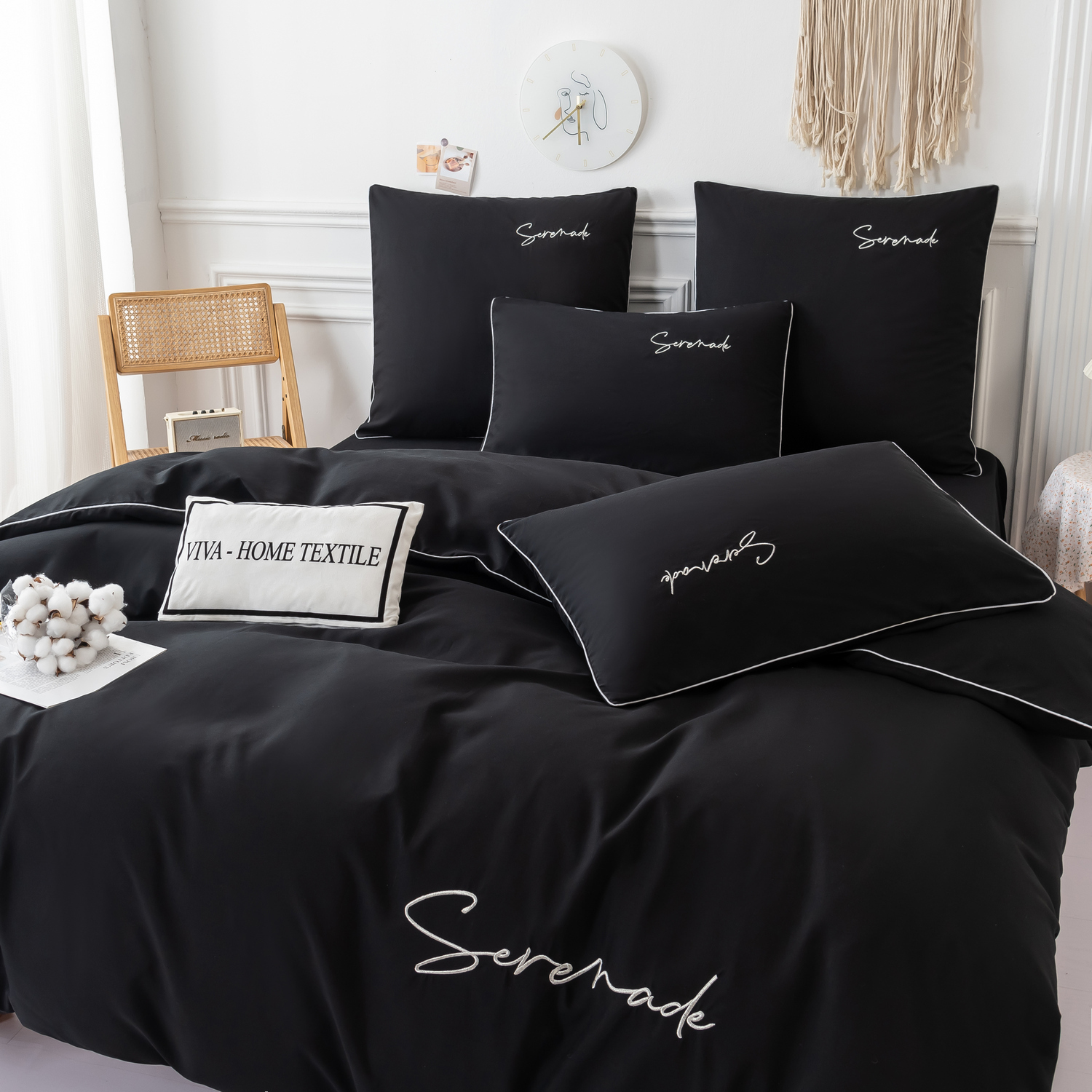 Пододеяльник и наволочки: Украшены вышивкой и кантом по периметру