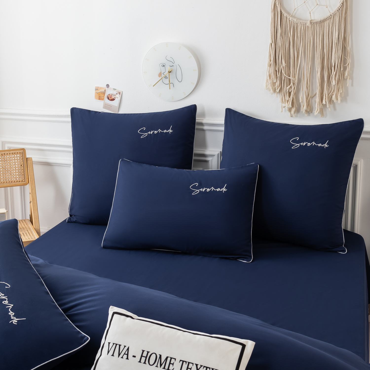 Пододеяльник и наволочки: Украшены вышивкой и кантом по периметру
