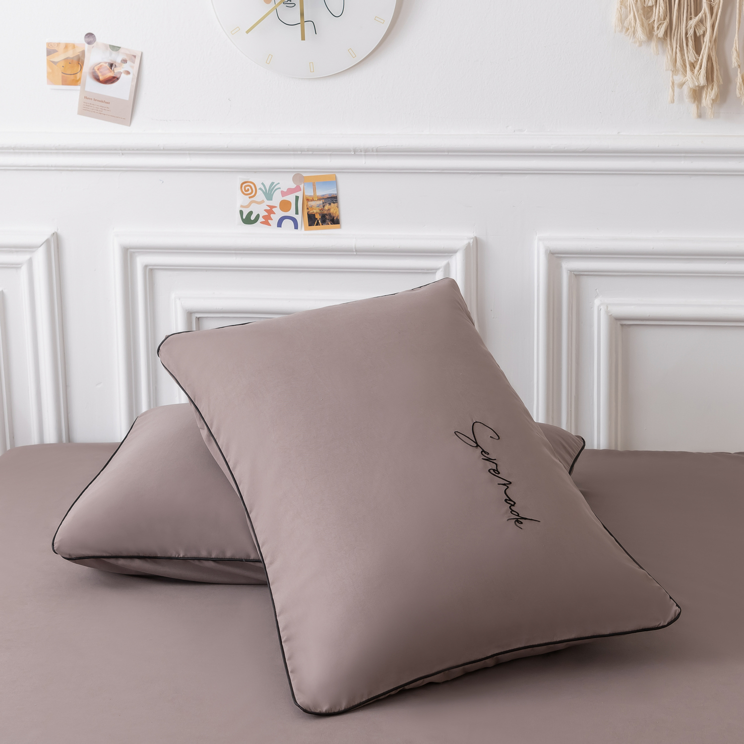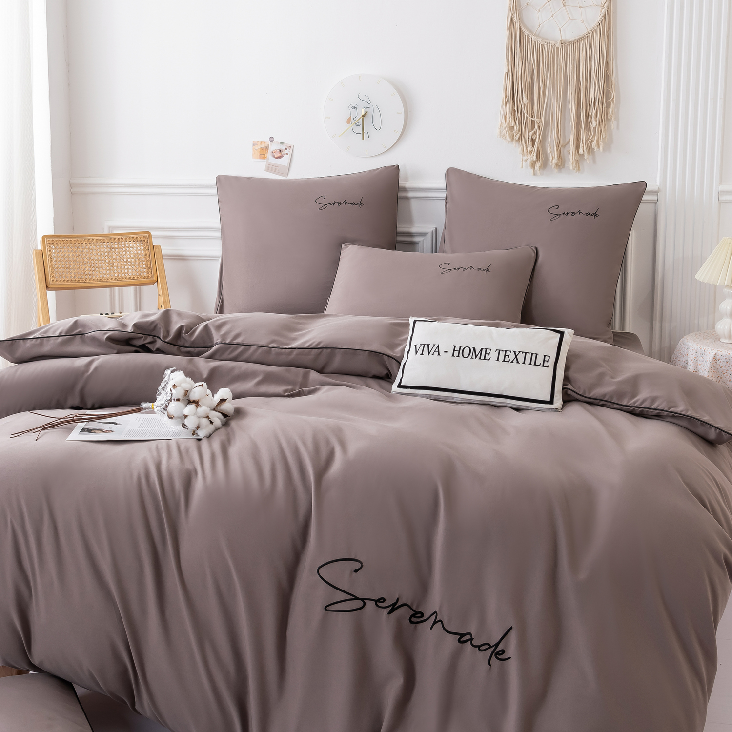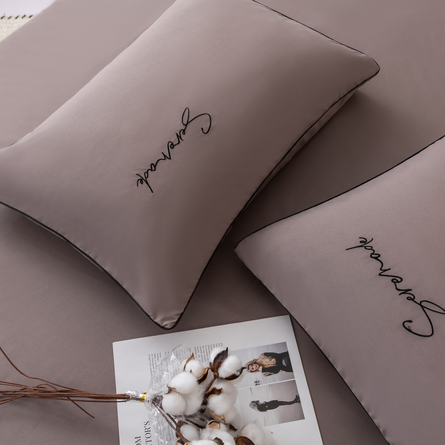 Пододеяльник и наволочки: Украшены вышивкой и кантом по периметру