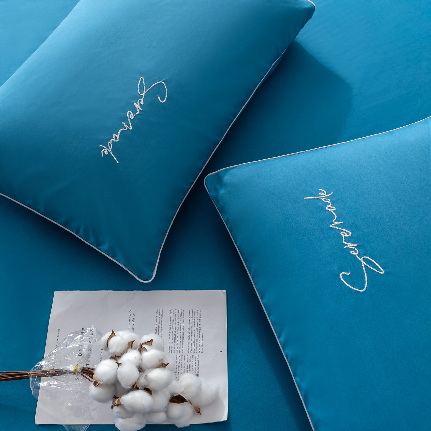 Пододеяльник и наволочки: Украшены вышивкой и кантом по периметру