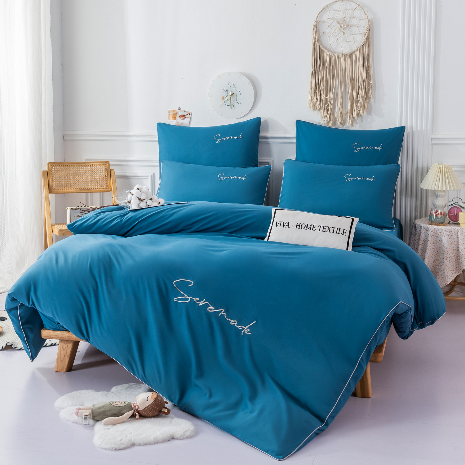 Пододеяльник и наволочки: Украшены вышивкой и кантом по периметру