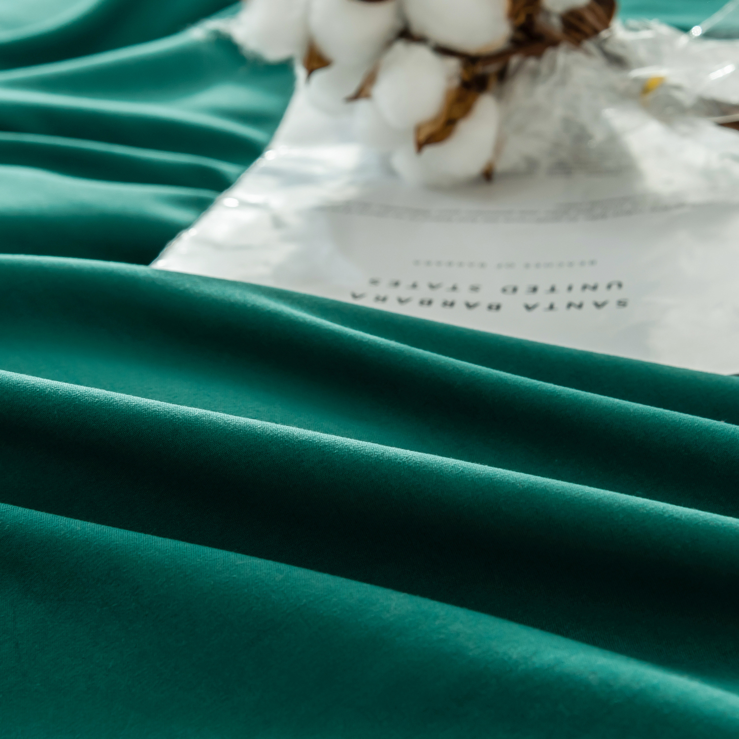 Белье изготовлено из сатина, смесовой ткани. Благодаря преобладанию хлопка в составе, ткань прекрасно пропускает воздух, создавая оптимальный микроклимат в постели. Смесовая ткань позволяет улучшить свойства белья: ткань быстро сохнет, практически не мнётся, не линяет, не садится после стирки.