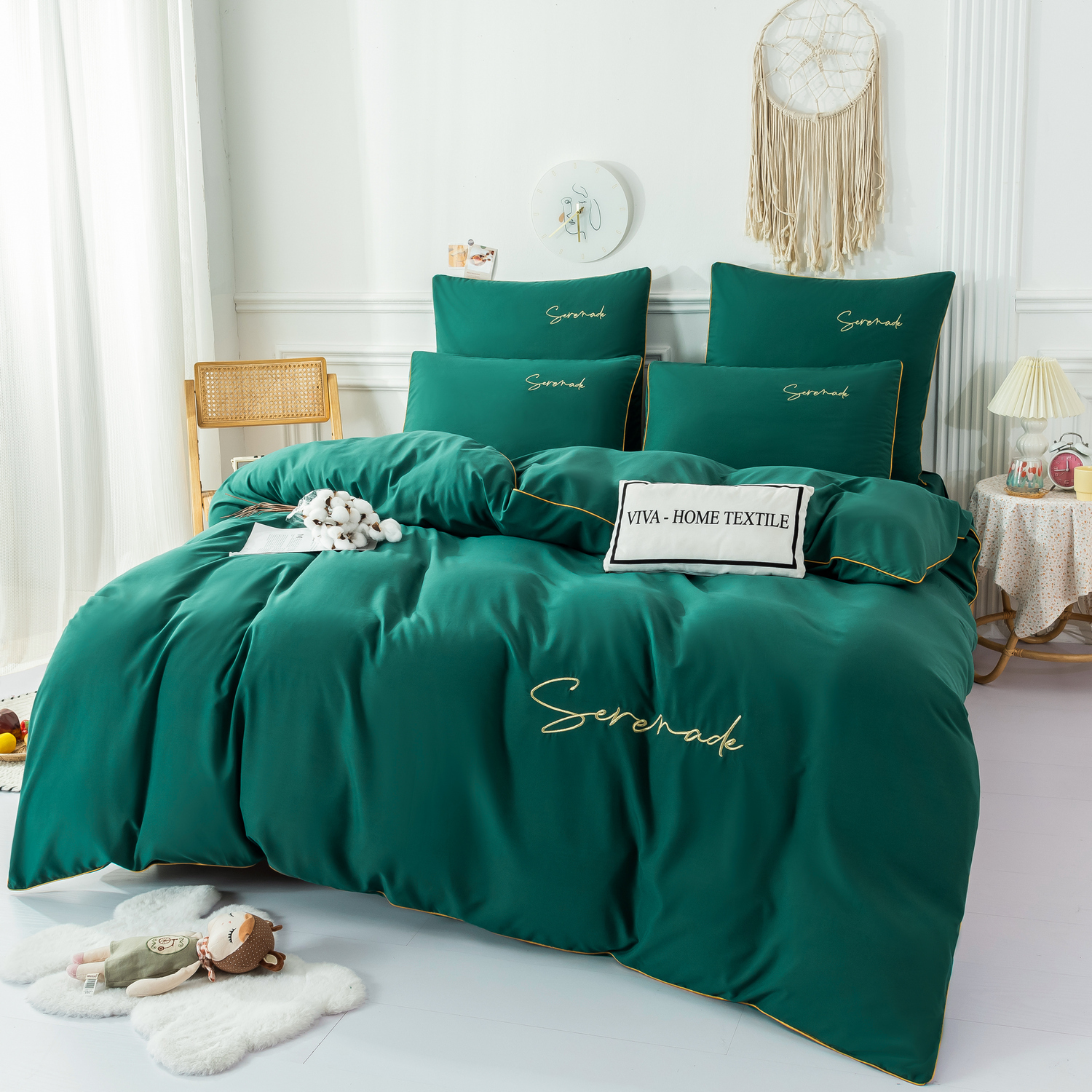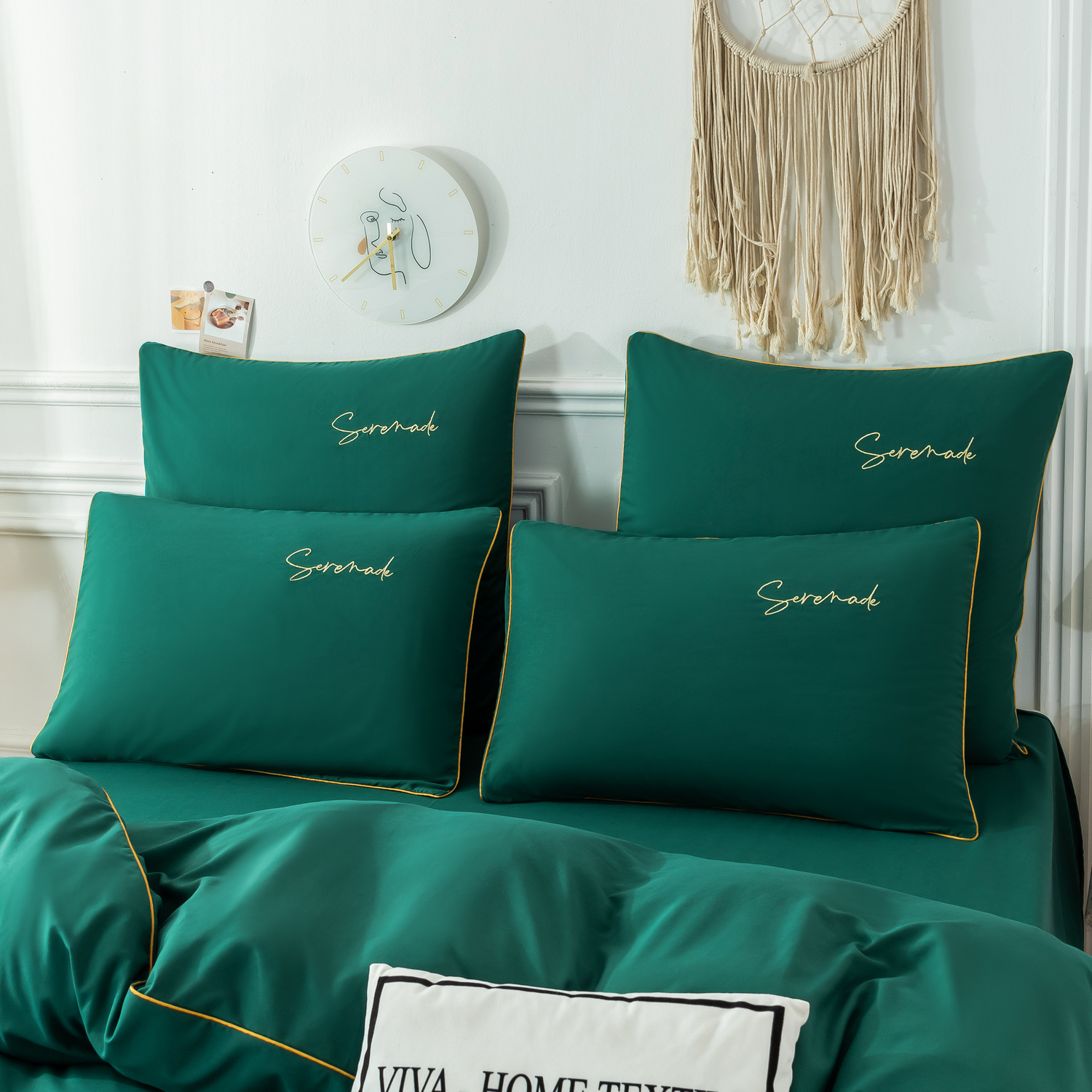 Пододеяльник и наволочки: Украшены вышивкой и кантом по периметру