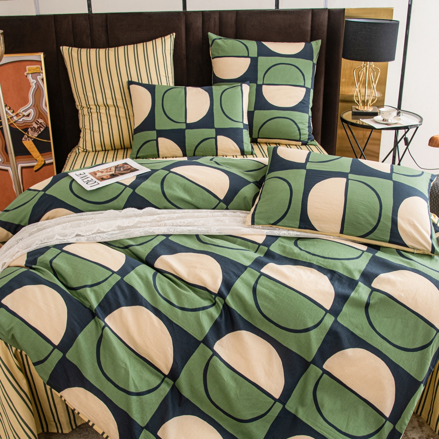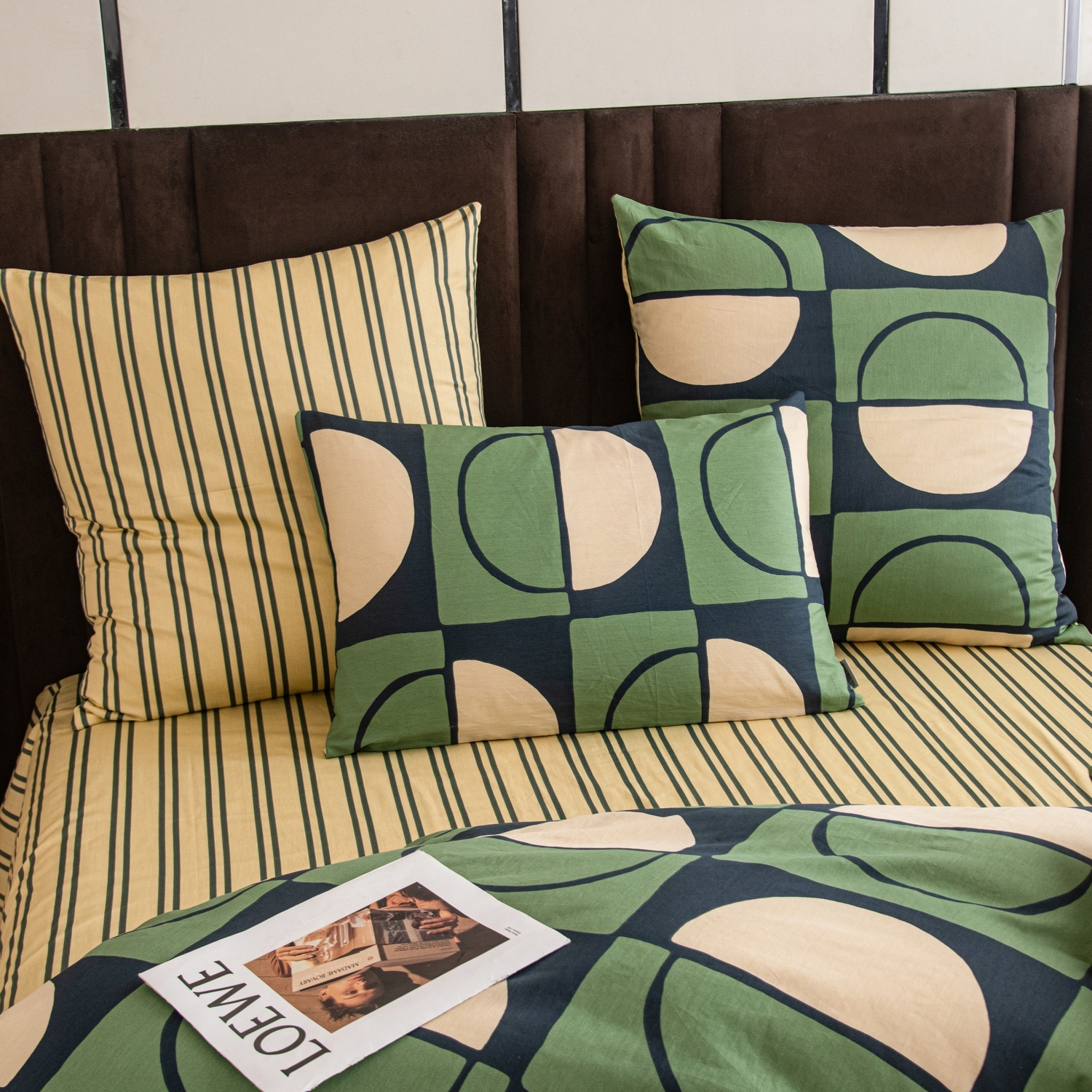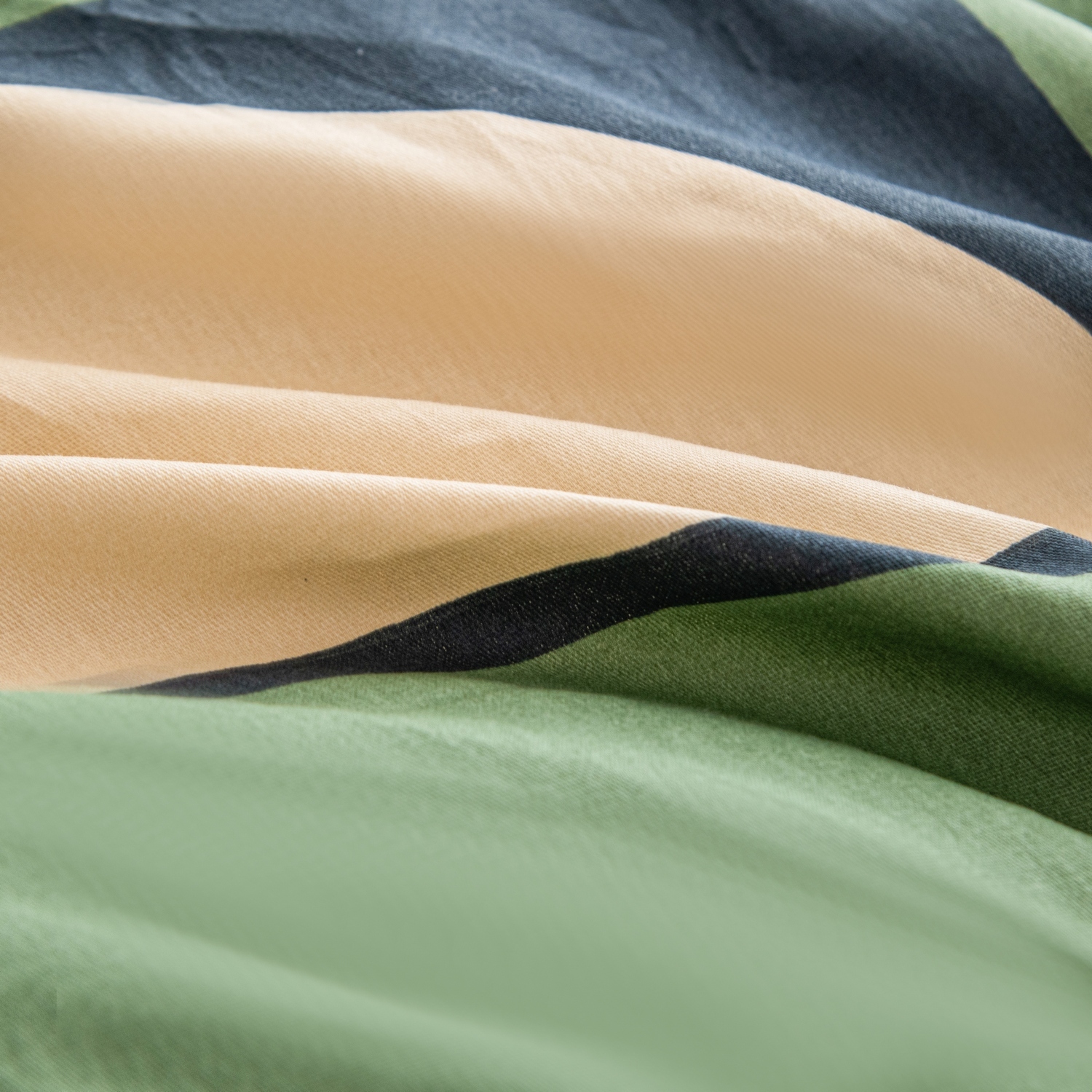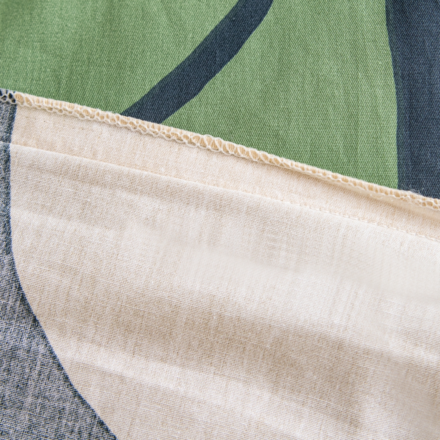 Ткань компаньон: Наволочки с разных сторон разной расцветки, пододеяльник с разных сторон разного цвета, простыня такого же цвета, как низ пододеяльника.