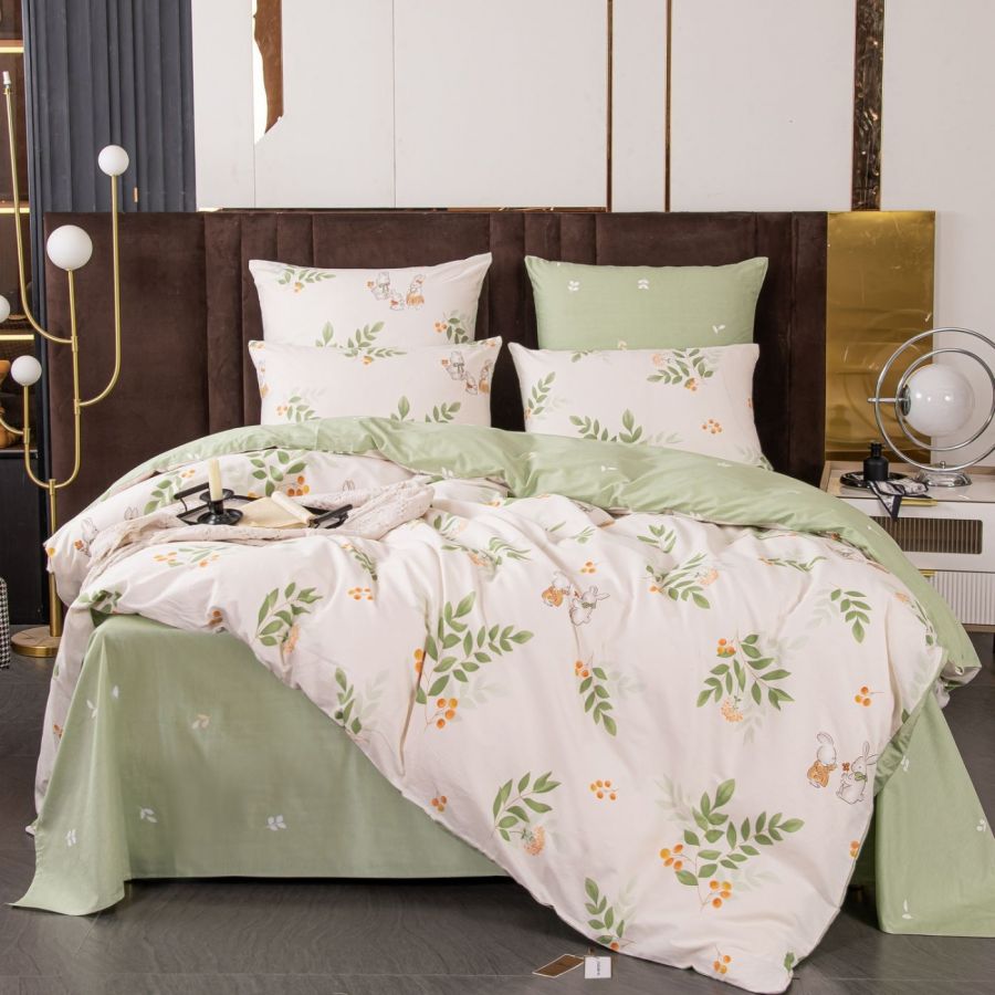 Ткань компаньон: Наволочки с разных сторон разной расцветки, пододеяльник с разных сторон разного цвета, простыня такого же цвета, как низ пододеяльника.