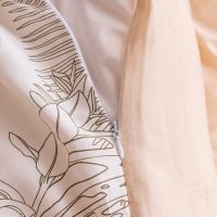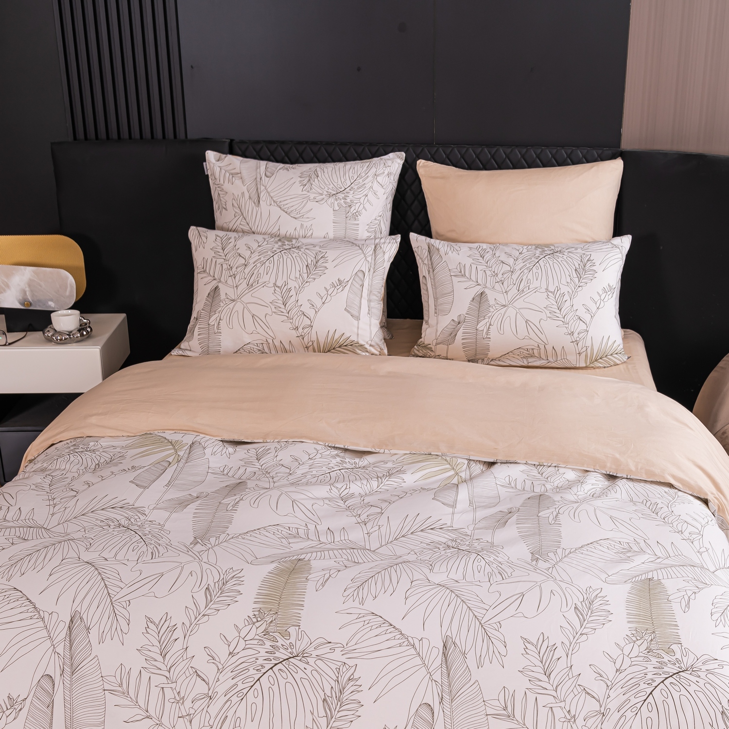 Ткань компаньон: Наволочки с разных сторон разной расцветки, пододеяльник с разных сторон разного цвета, простыня такого же цвета, как низ пододеяльника.