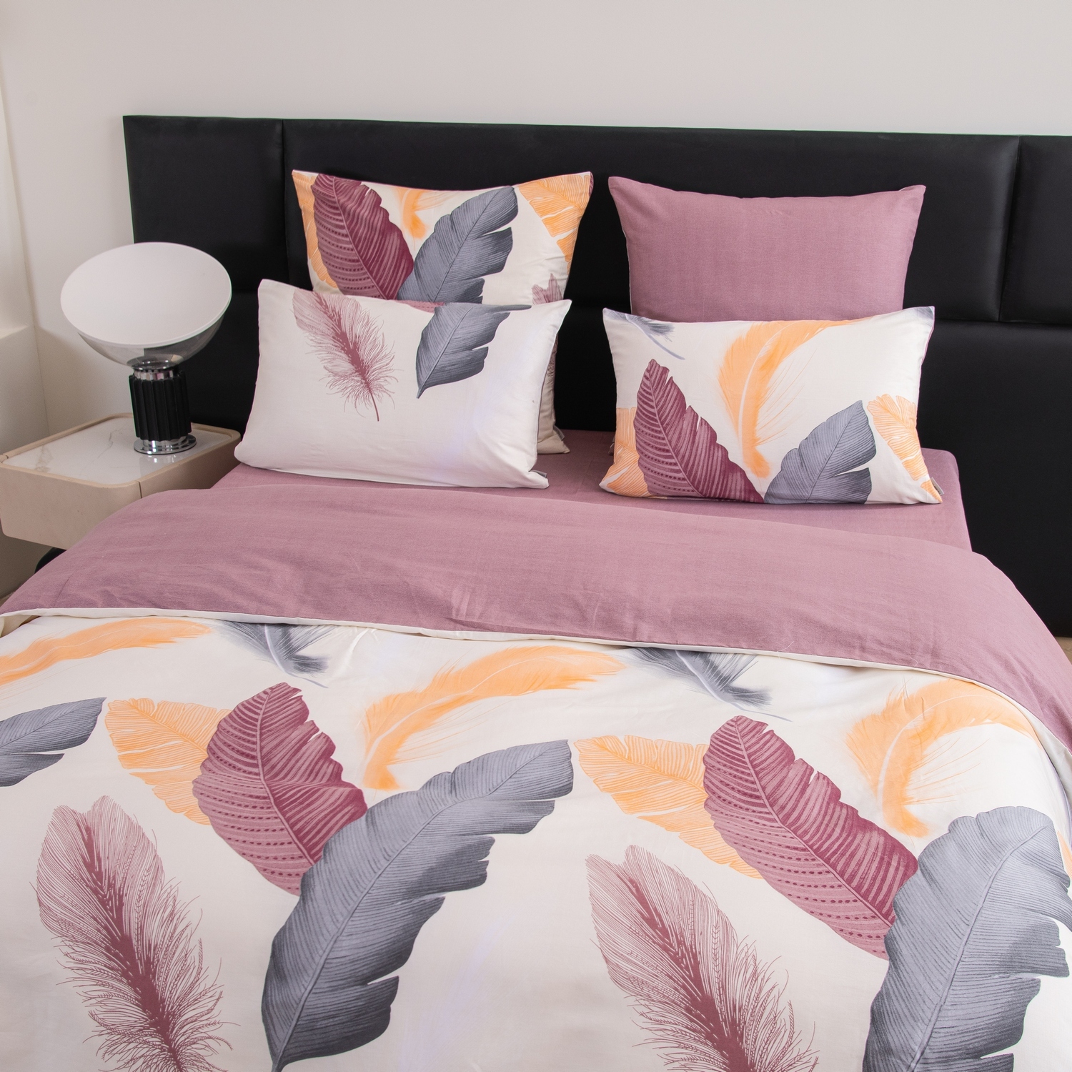 Ткань компаньон: Наволочки с разных сторон разной расцветки, пододеяльник с разных сторон разного цвета, простыня такого же цвета, как низ пододеяльника.