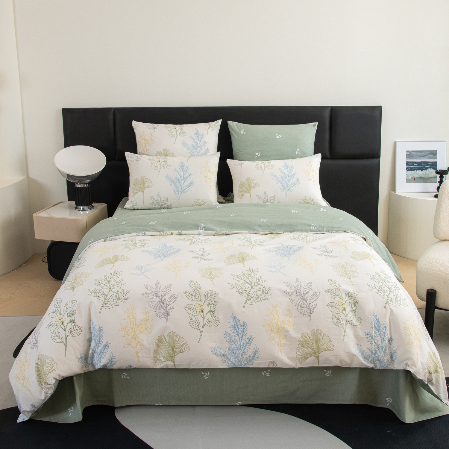 Ткань компаньон: Наволочки с разных сторон разной расцветки, пододеяльник с разных сторон разного цвета, простыня такого же цвета, как низ пододеяльника.