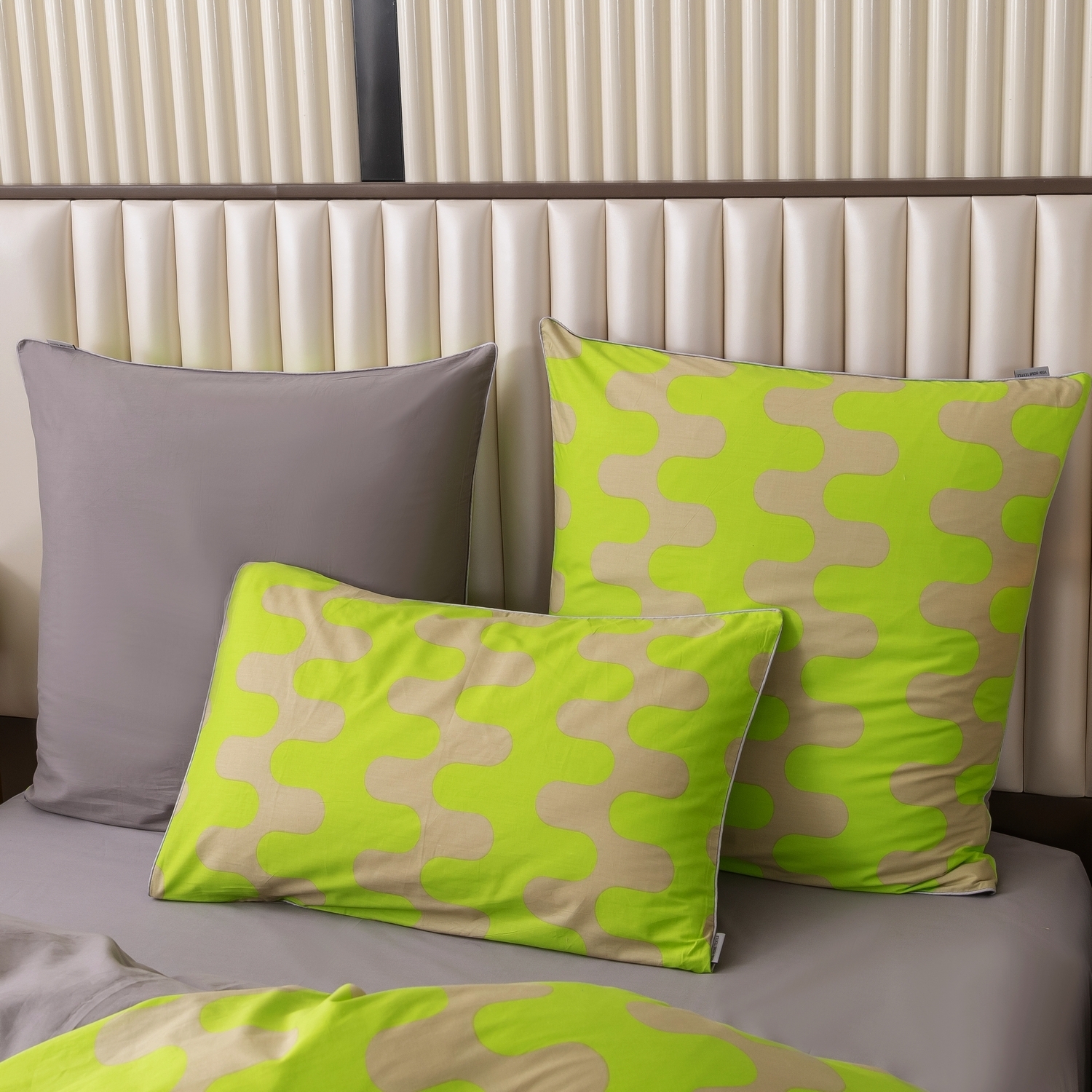Ткань компаньон: Наволочки с разных сторон разной расцветки, пододеяльник с разных сторон разного цвета, простыня такого же цвета, как низ пододеяльника.