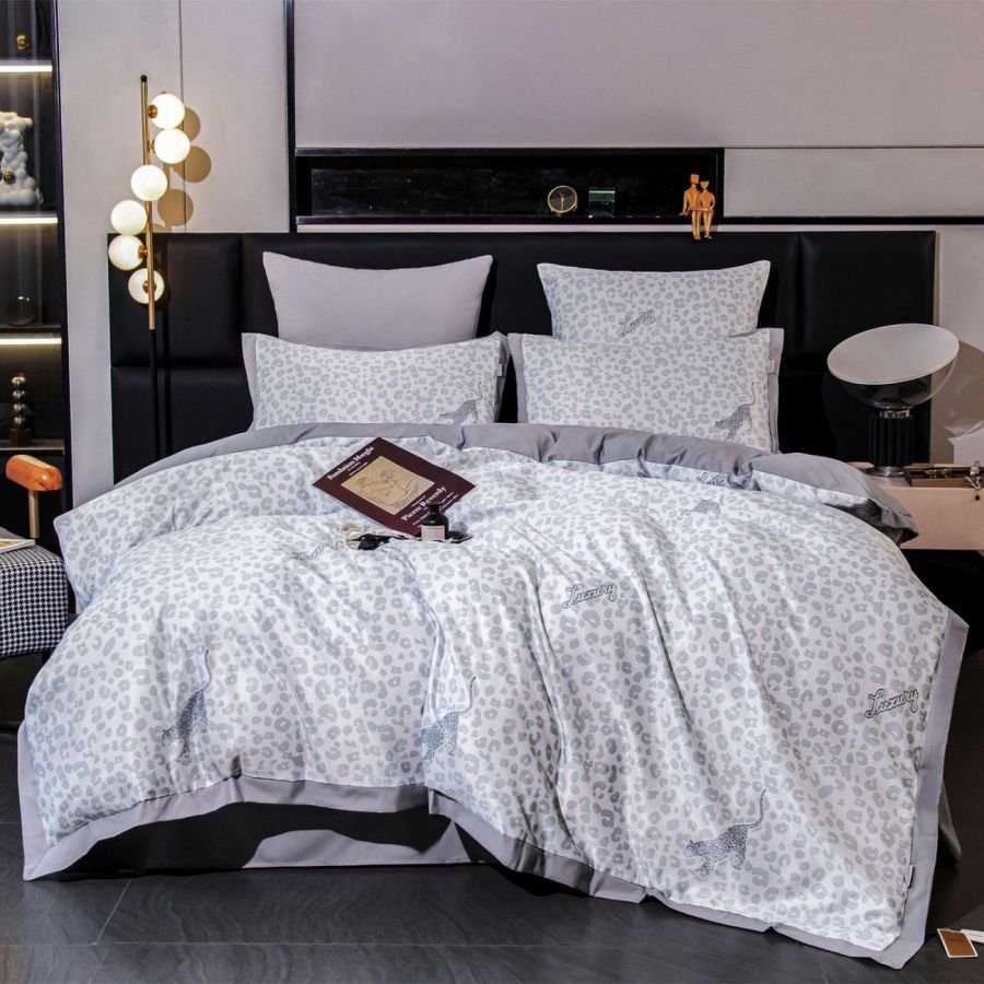 Ткань компаньон: Верх пододеяльника - мерсеризованный сатин, низ пододеяльника - сатин. Наволочки 50*70 см и 70*70 см с разных сторон разной расцветки. Пододеяльник с разных сторон разного цвета. Простыня однотонная такого же цвета, как низ пододеяльника.