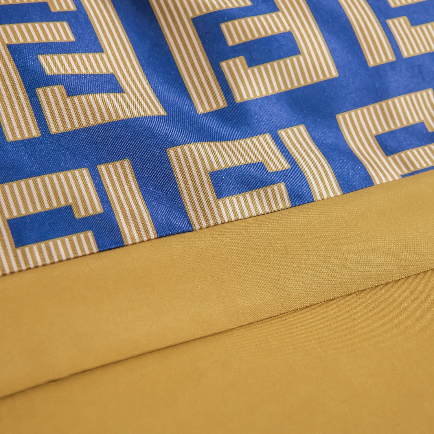 Ткань компаньон: Верх пододеяльника - мерсеризованный сатин, низ пододеяльника - сатин. Наволочки 50*70 см и 70*70 см с разных сторон разной расцветки. Пододеяльник с разных сторон разного цвета. Простыня однотонная такого же цвета, как низ пододеяльника.