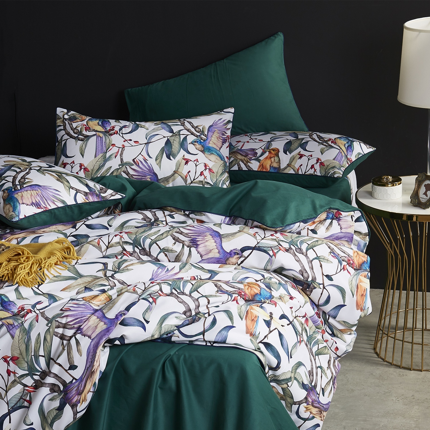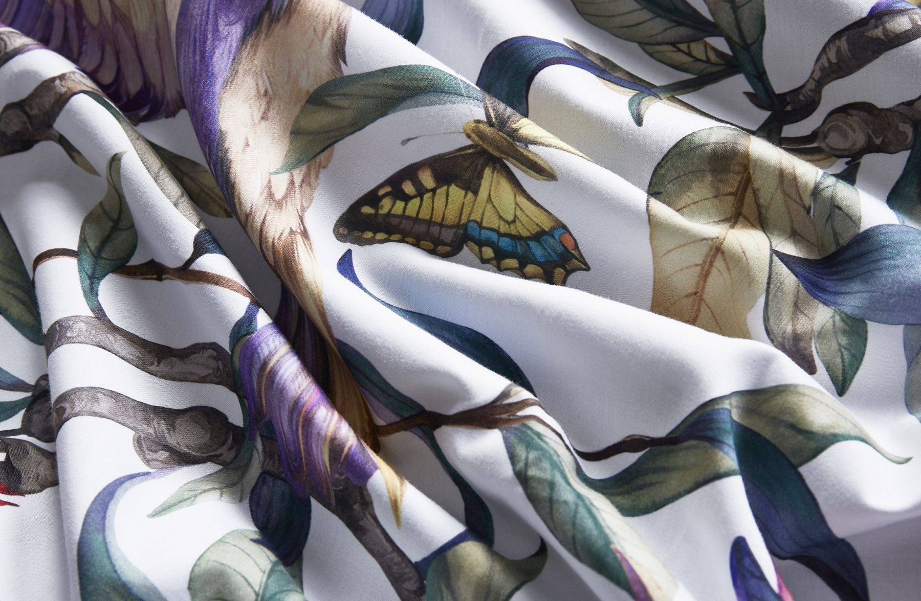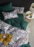 Ткань компаньон: Наволочки 50*70 с разных сторон разной расцветки, наволочки 70*70 однотонные в цвет простыни, пододеяльник с разных сторон разного цвета, простыня однотонная такого же цвета, как низ пододеяльника.