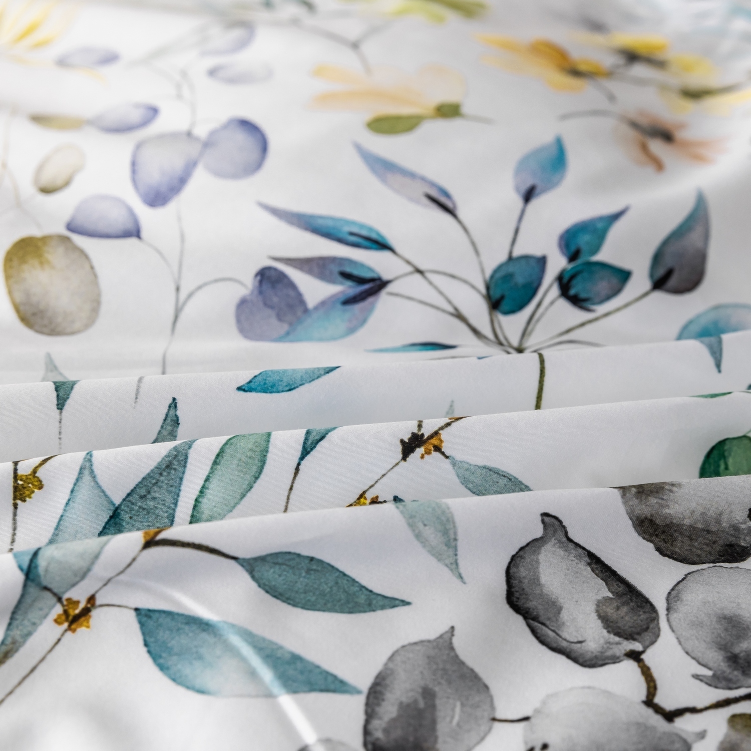 Ткань компаньон: Наволочки 50*70 с разных сторон разной расцветки, наволочки 70*70 однотонные в цвет простыни, пододеяльник с разных сторон разного цвета, простыня однотонная такого же цвета, как низ пододеяльника.