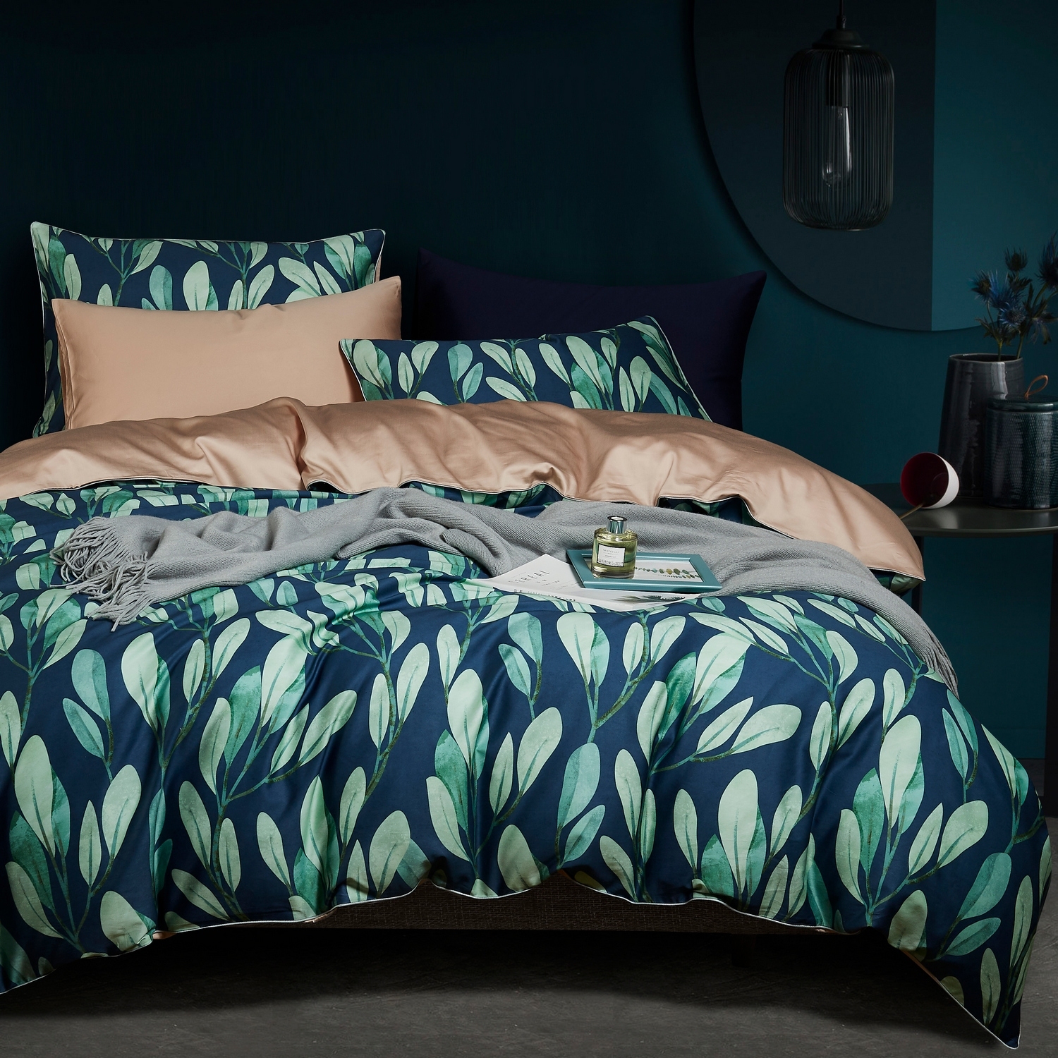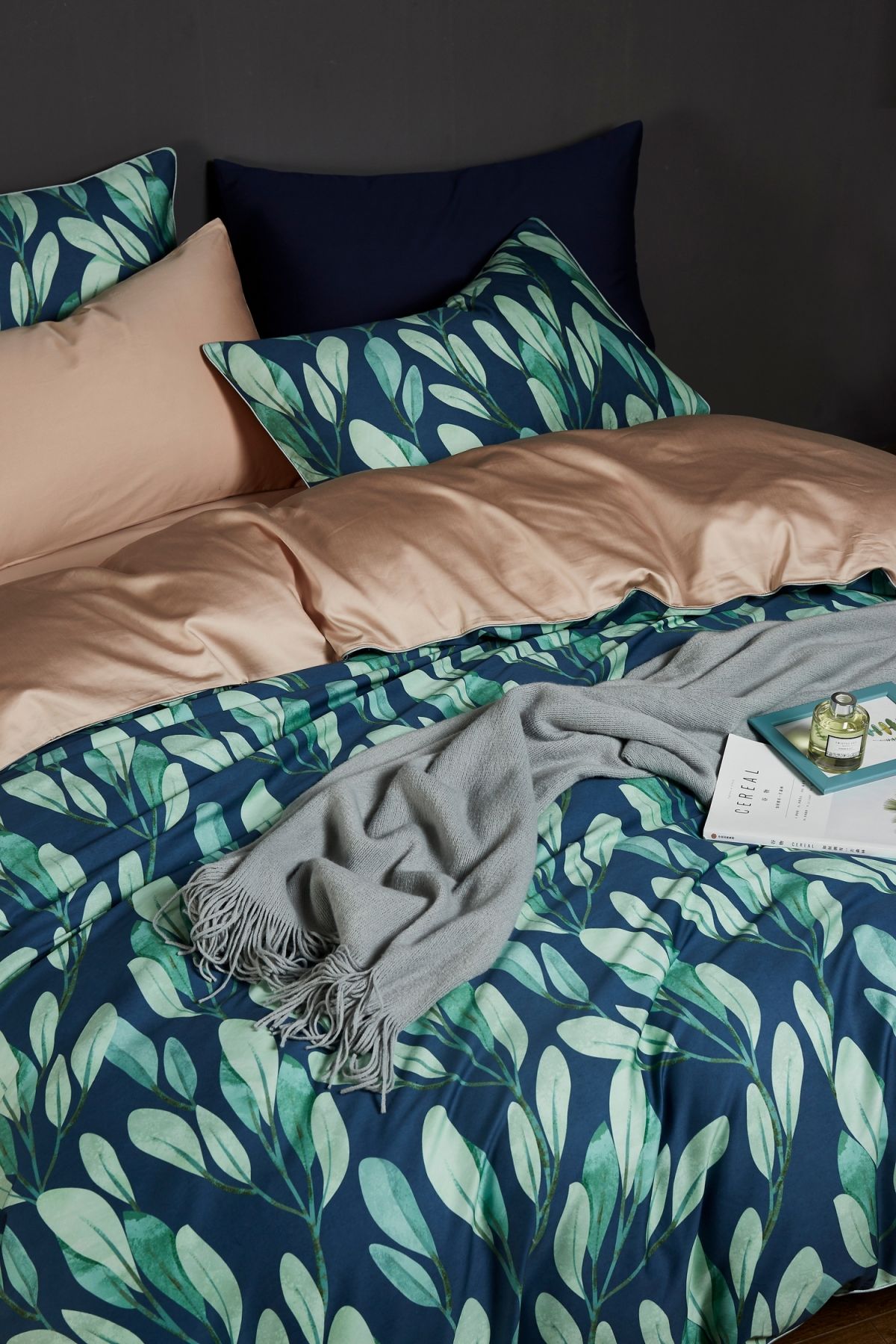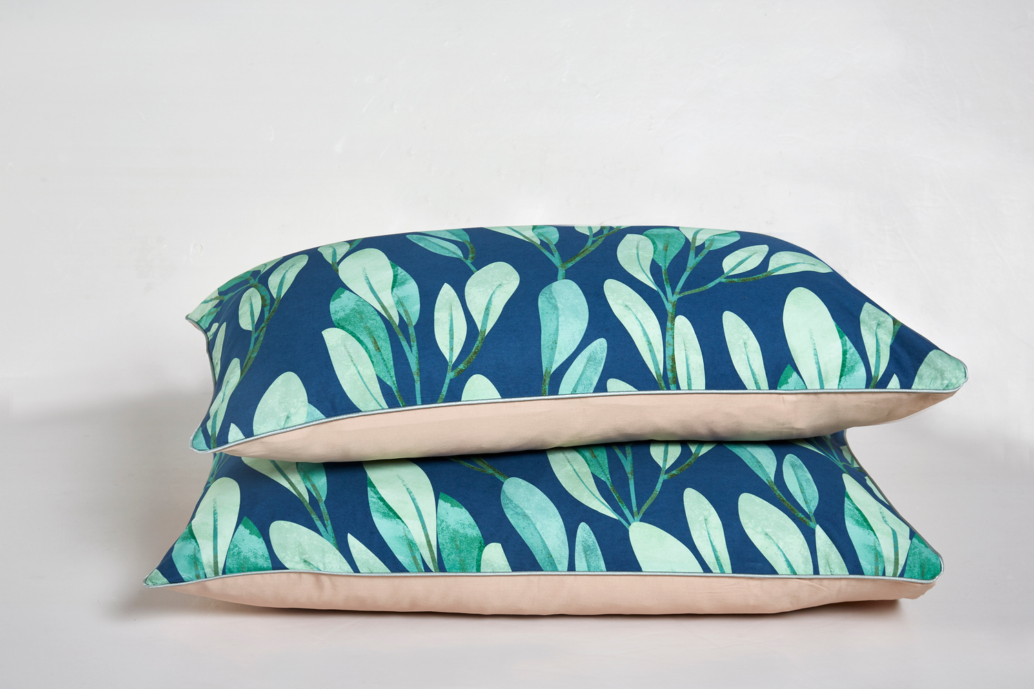Ткань компаньон: Наволочки 50*70 с разных сторон разной расцветки, наволочки 70*70 однотонные в цвет простыни, пододеяльник с разных сторон разного цвета, простыня однотонная такого же цвета, как низ пододеяльника.