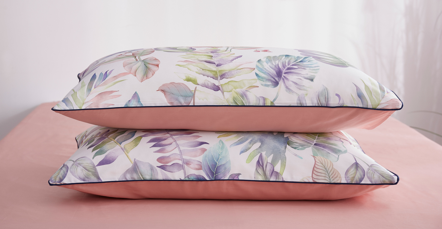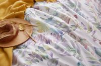Ткань компаньон: Наволочки 50*70 с разных сторон разной расцветки, наволочки 70*70 однотонные в цвет простыни, пододеяльник с разных сторон разного цвета, простыня однотонная такого же цвета, как низ пододеяльника.