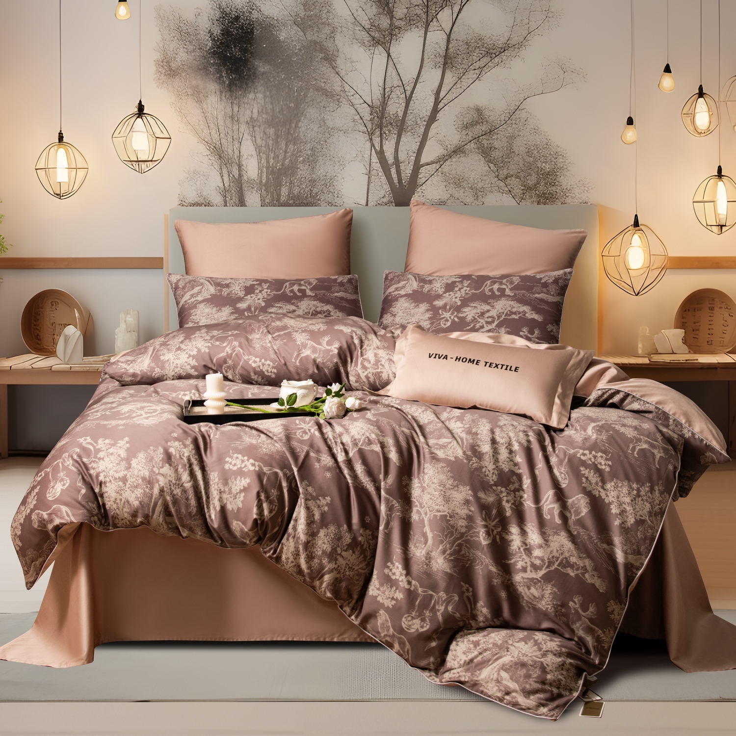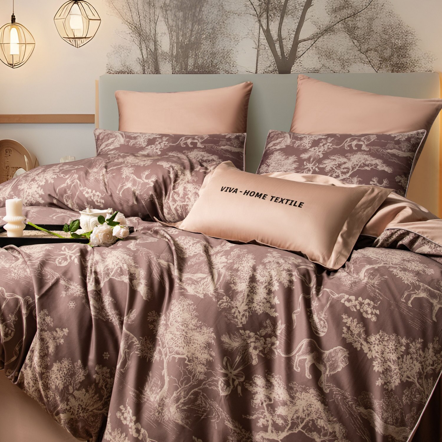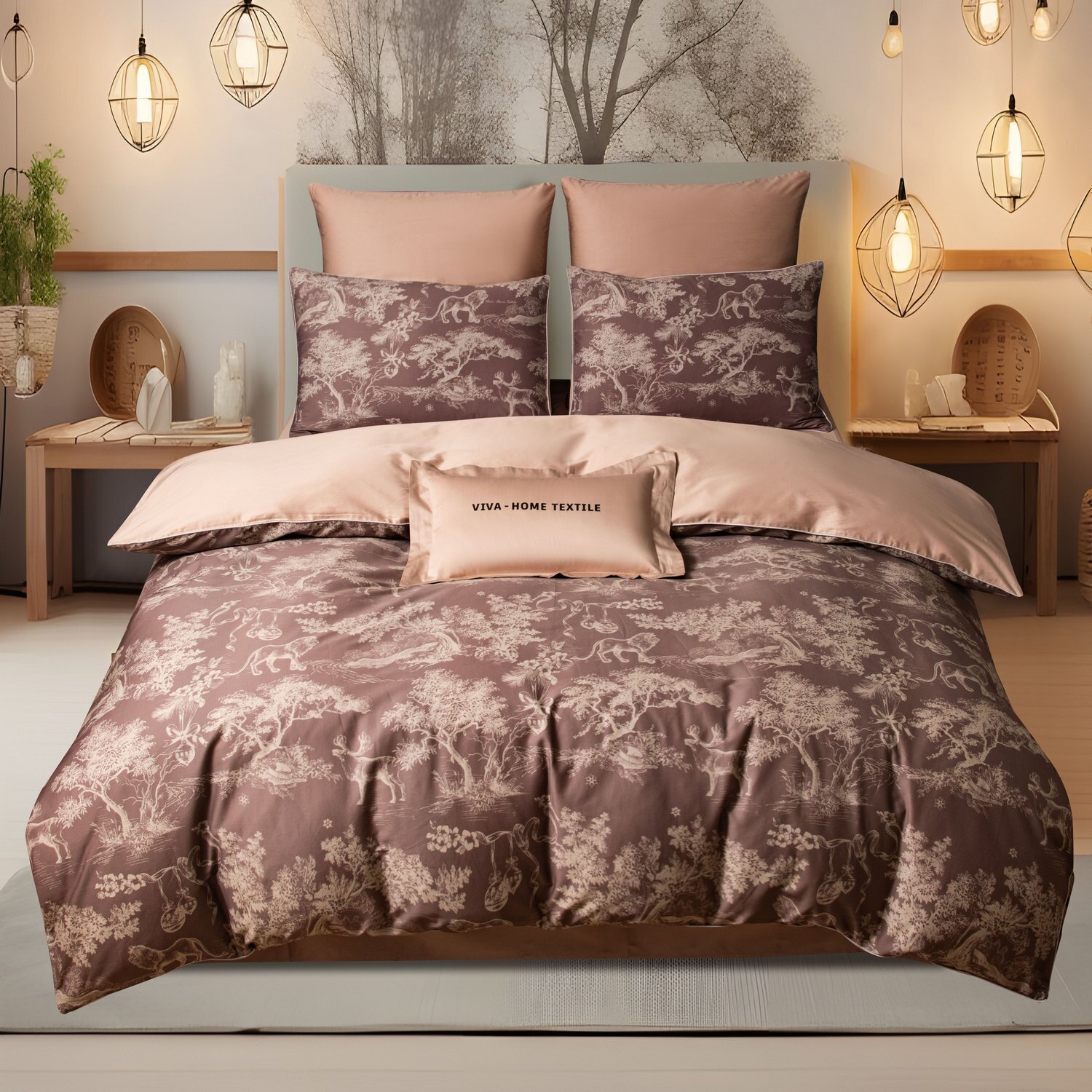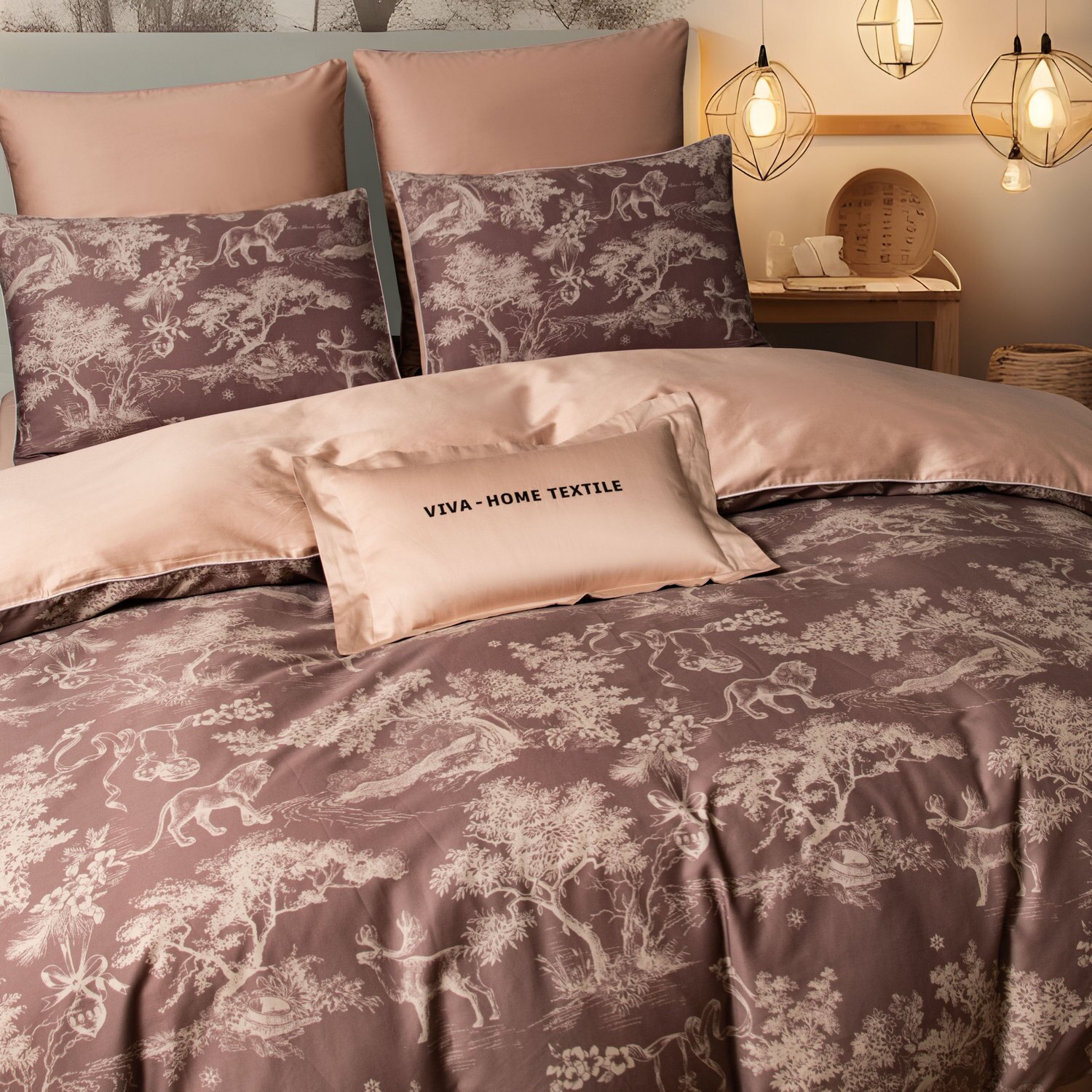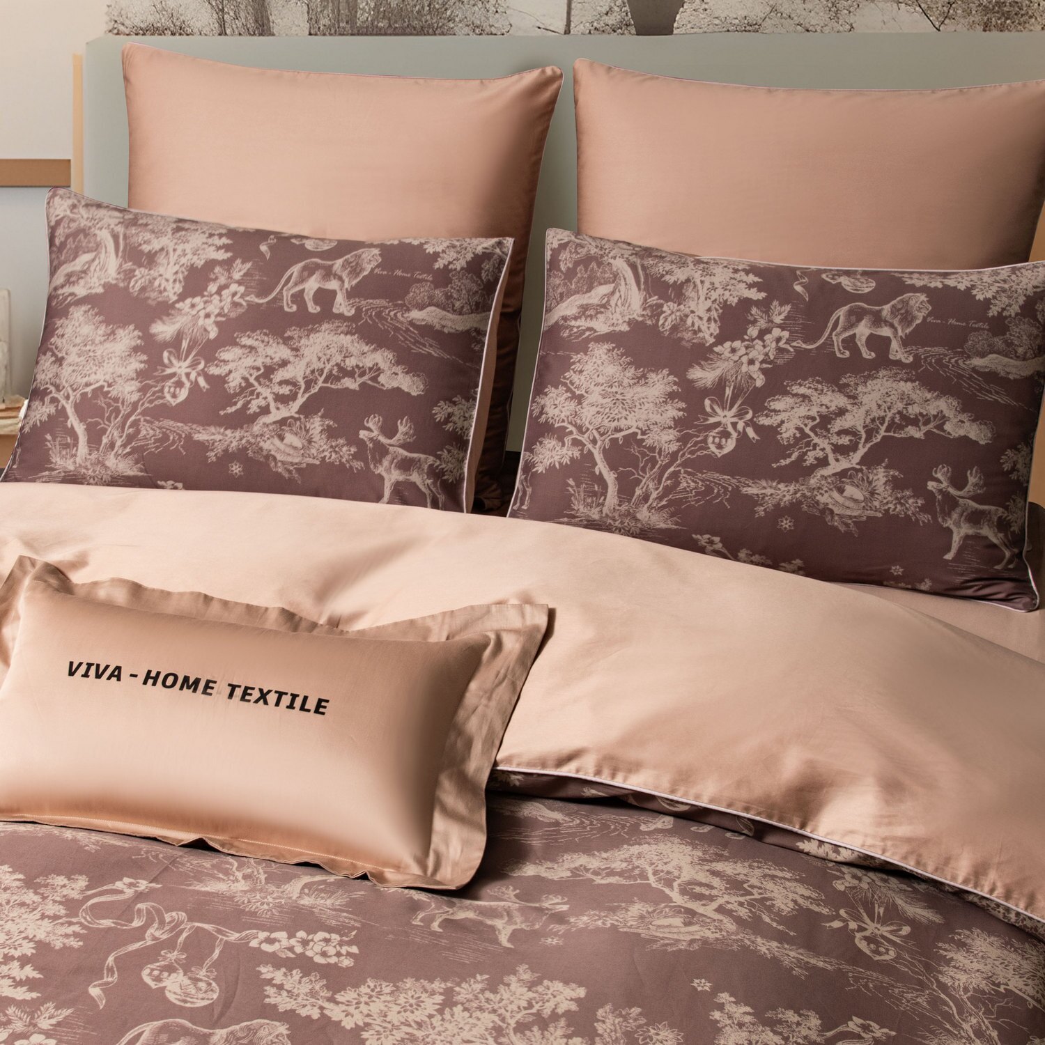 Ткань компаньон: Наволочки 50*70 с разных сторон разной расцветки, наволочки 70*70 однотонные в цвет простыни, пододеяльник с разных сторон разного цвета, простыня однотонная такого же цвета, как низ пододеяльника.