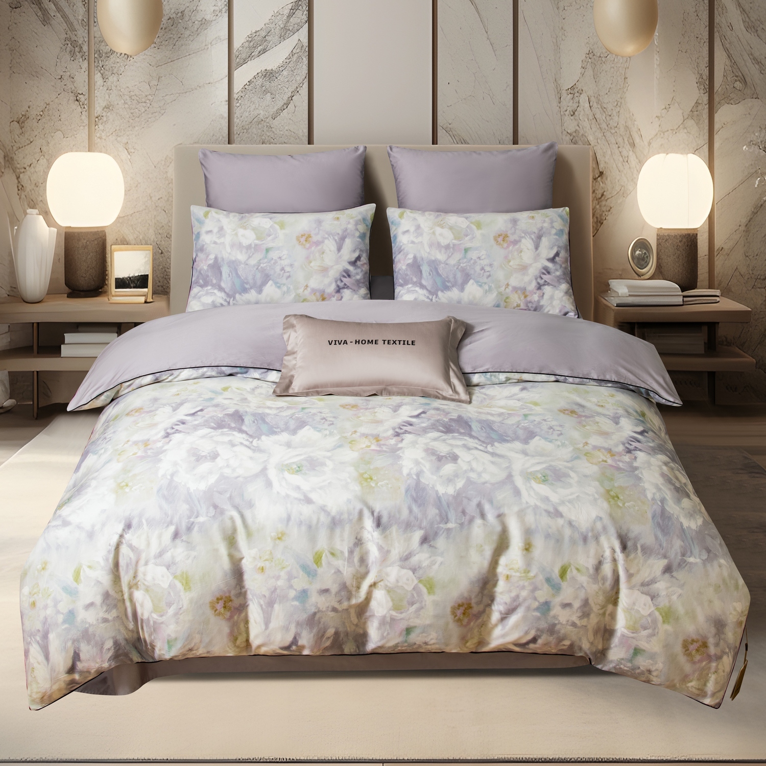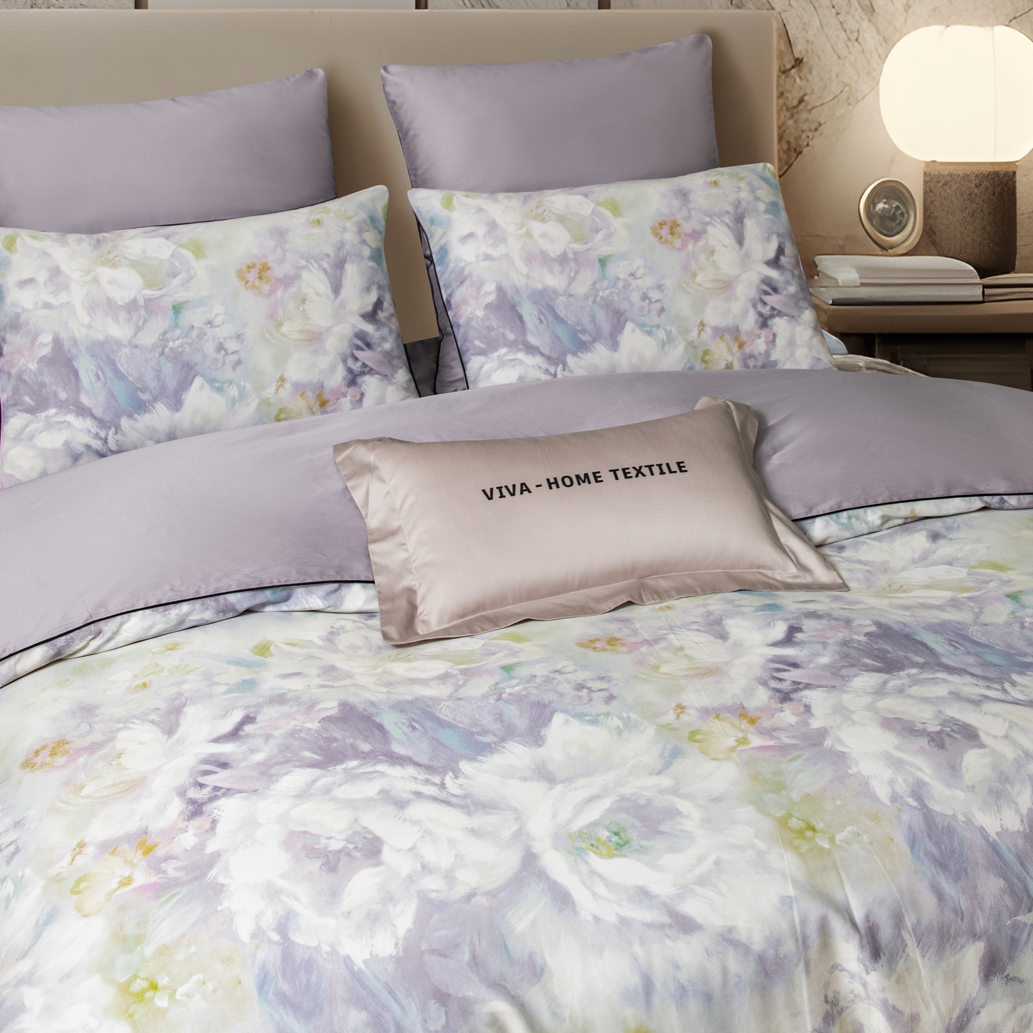 Ткань компаньон: Наволочки 50*70 с разных сторон разной расцветки, наволочки 70*70 однотонные в цвет простыни, пододеяльник с разных сторон разного цвета, простыня однотонная такого же цвета, как низ пододеяльника.