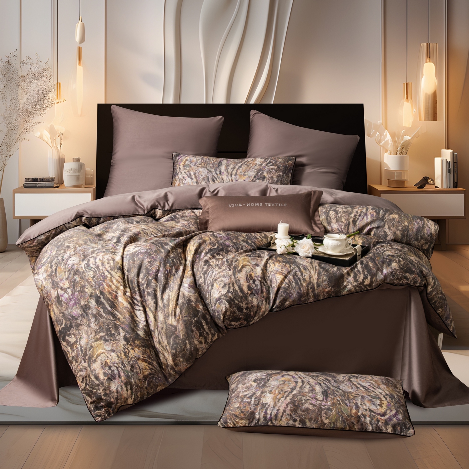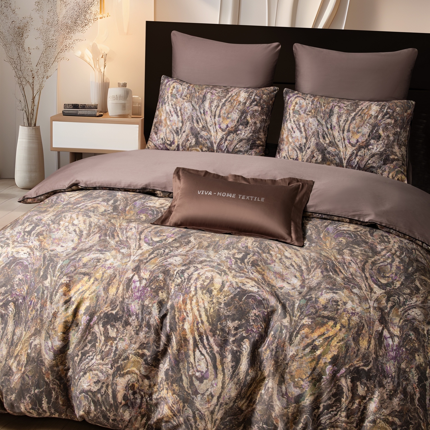 Ткань компаньон: Наволочки 50*70 с разных сторон разной расцветки, наволочки 70*70 однотонные в цвет простыни, пододеяльник с разных сторон разного цвета, простыня однотонная такого же цвета, как низ пододеяльника.