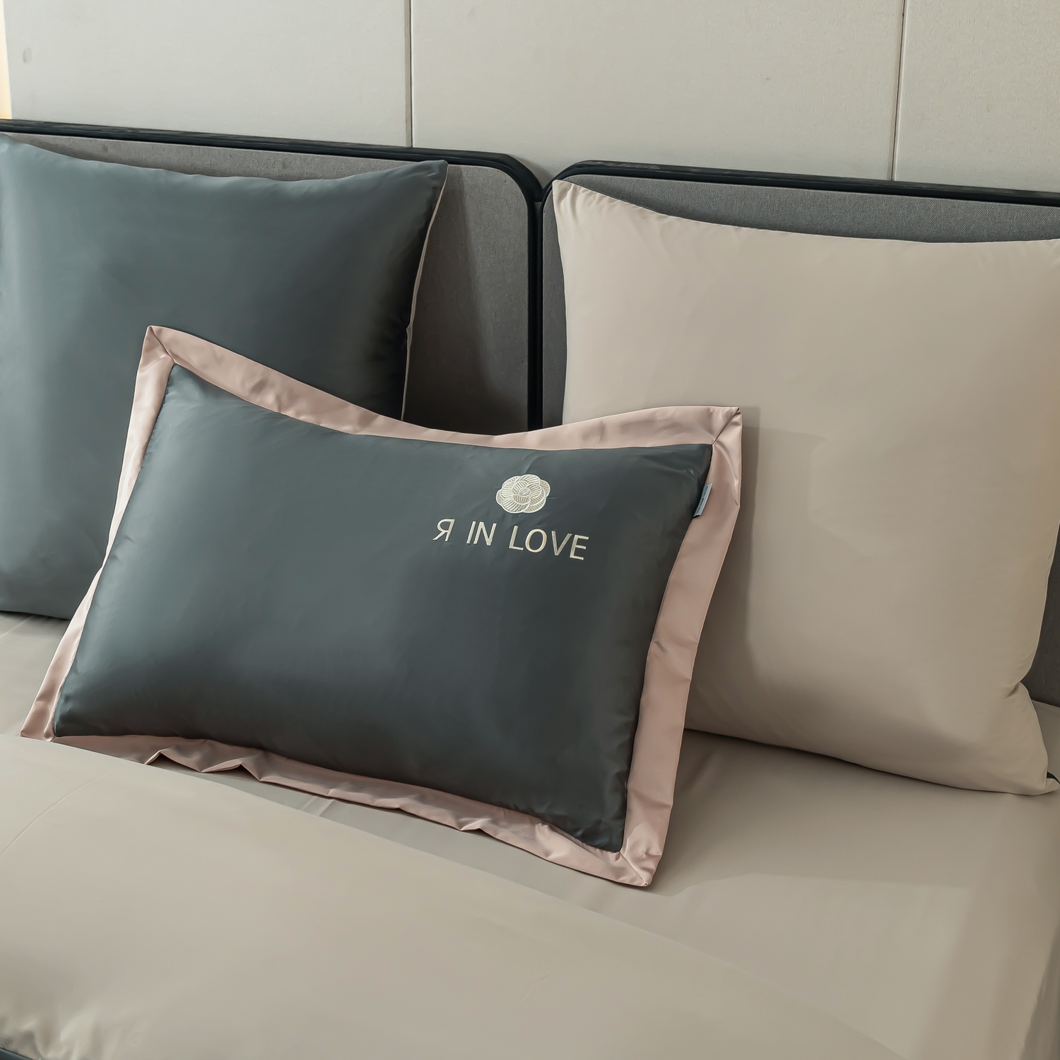 Наволочки с разных сторон разной ткани: верх - шелк, низ - сатин.