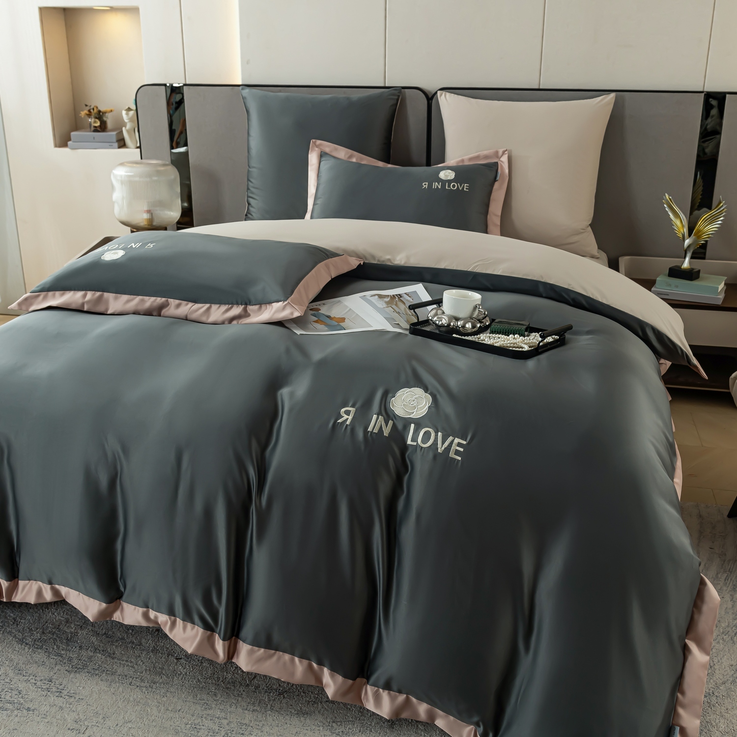 Простыня сатин однотонный такого же цвета и ткани, как низ пододеяльника;