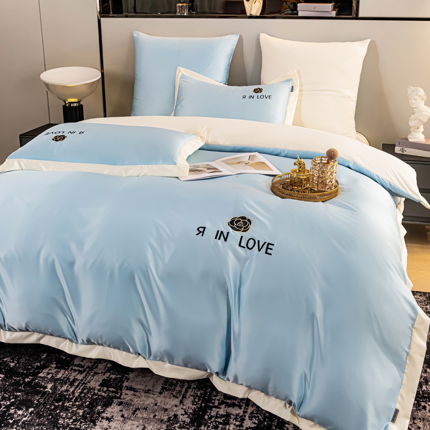 Простыня сатин однотонный такого же цвета и ткани, как низ пододеяльника;