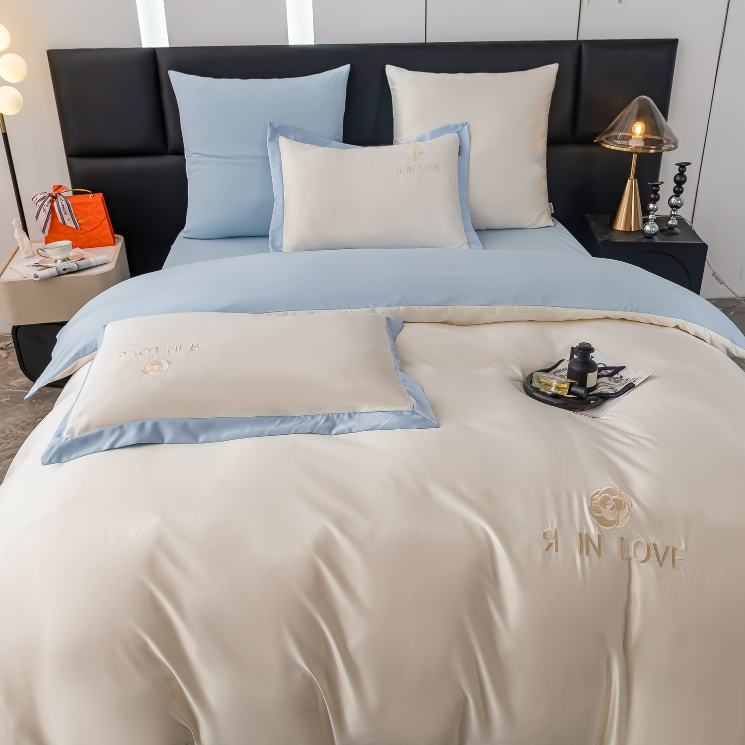 Простыня сатин однотонный такого же цвета и ткани, как низ пододеяльника;
