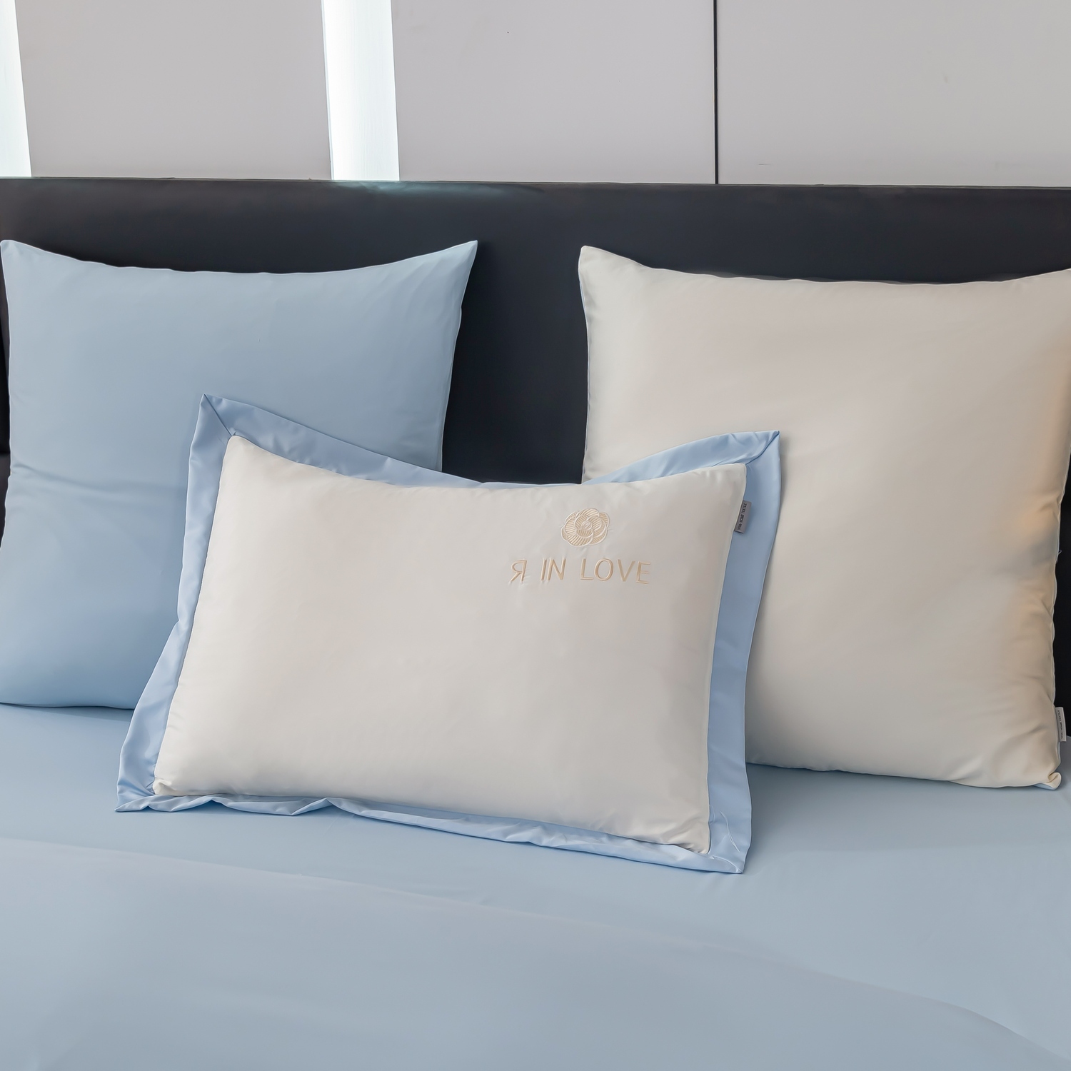 Наволочки с разных сторон разной ткани: верх - шелк, низ - сатин.