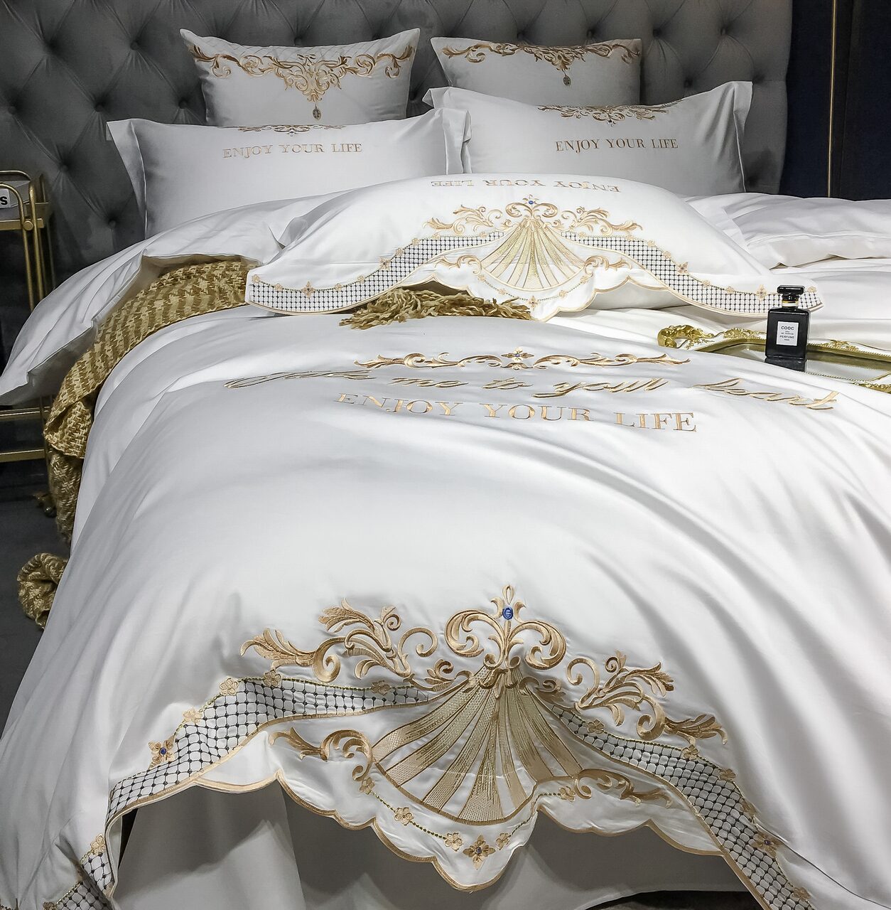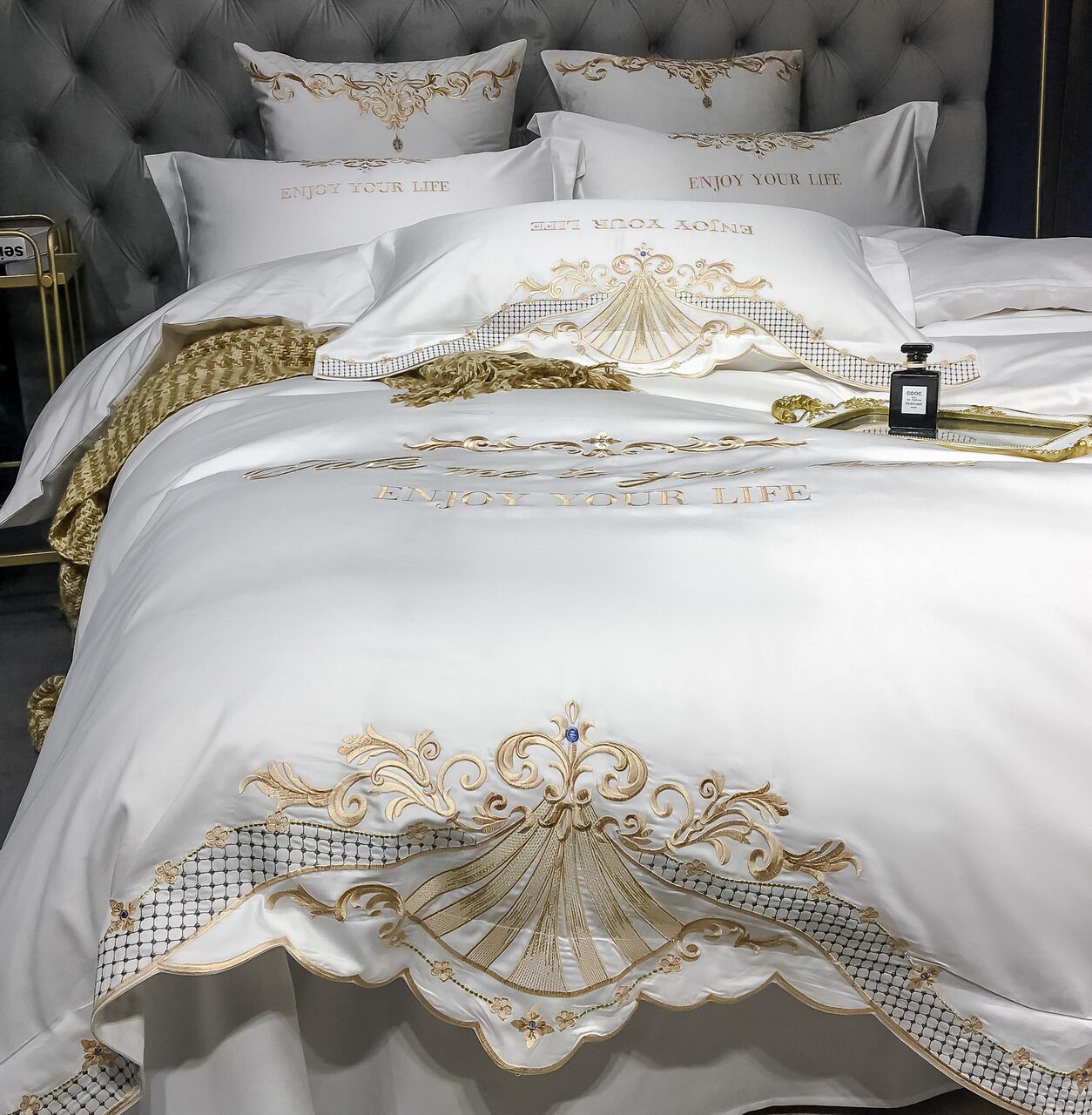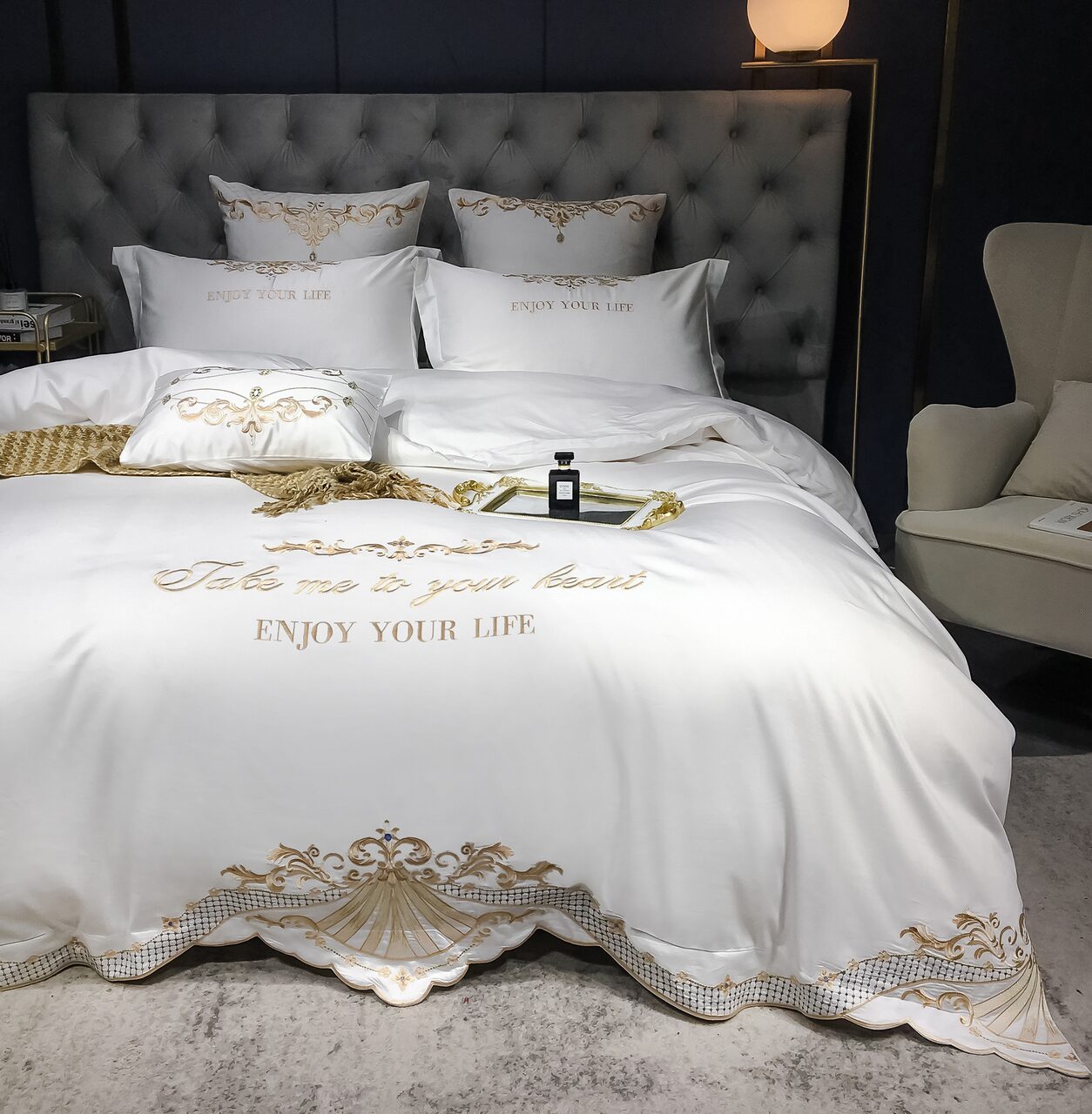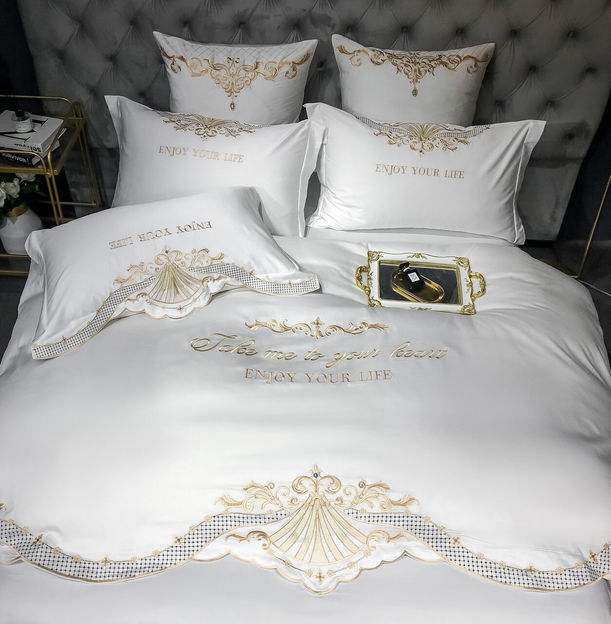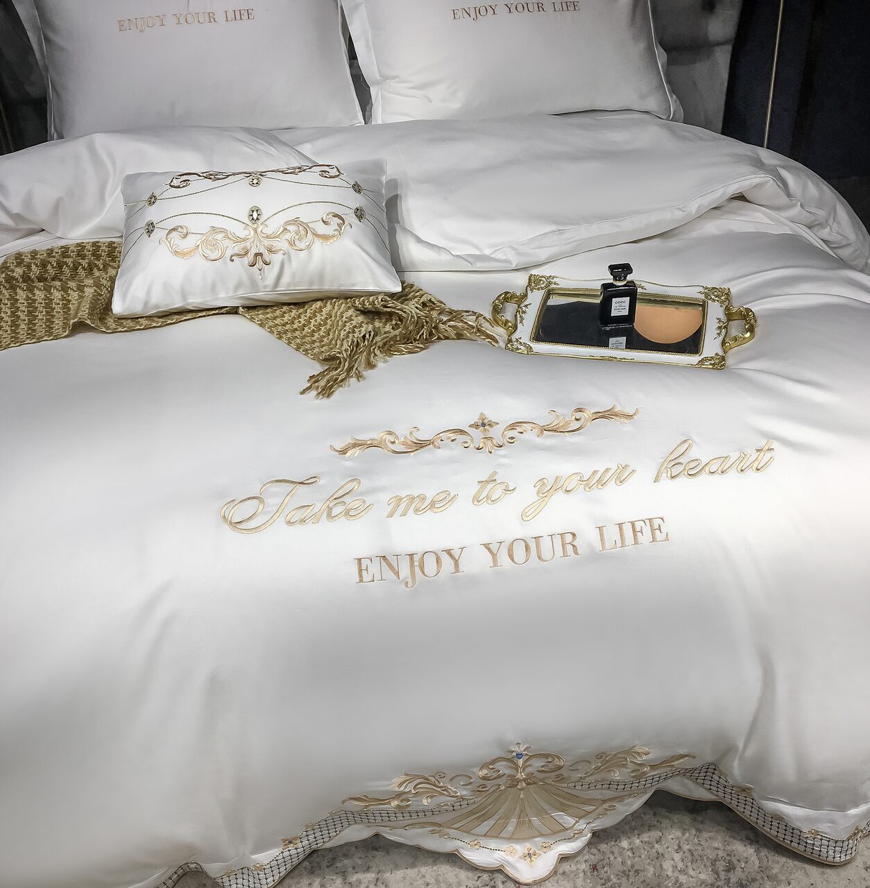 Наволочки и пододеяльник: Украшены вышивкой и кантом по периметру