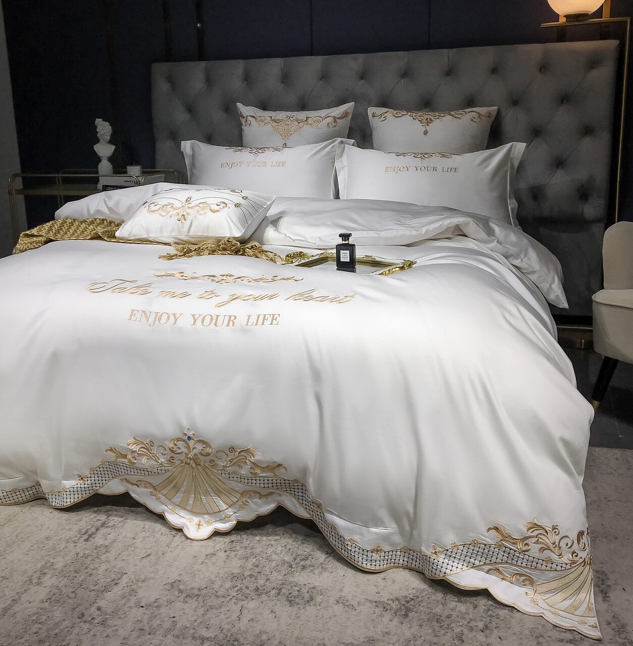 Наволочки и пододеяльник: Украшены вышивкой и кантом по периметру