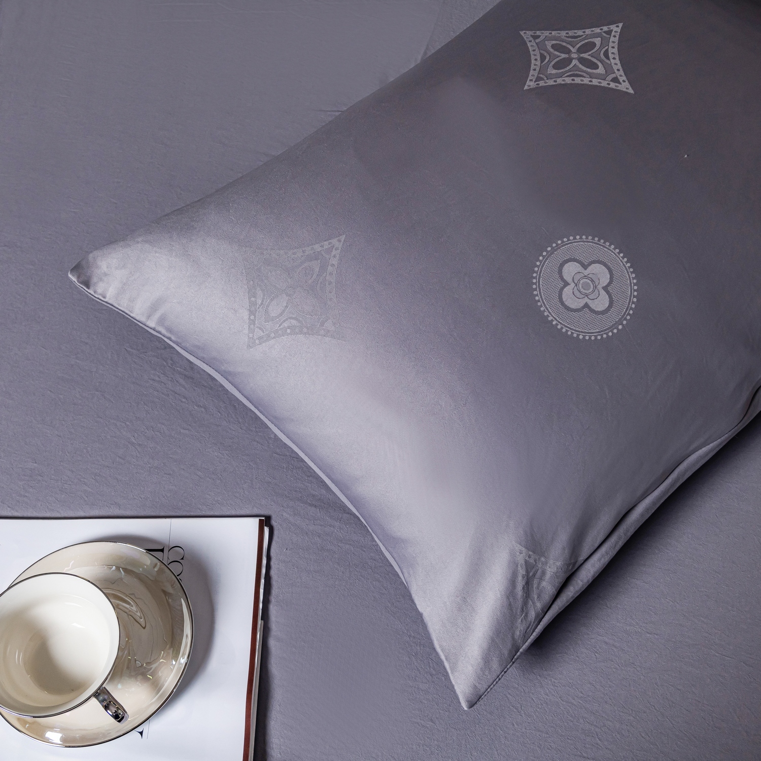 - Наволочки с разных сторон разной ткани: верх - жаккард, низ - сатин.