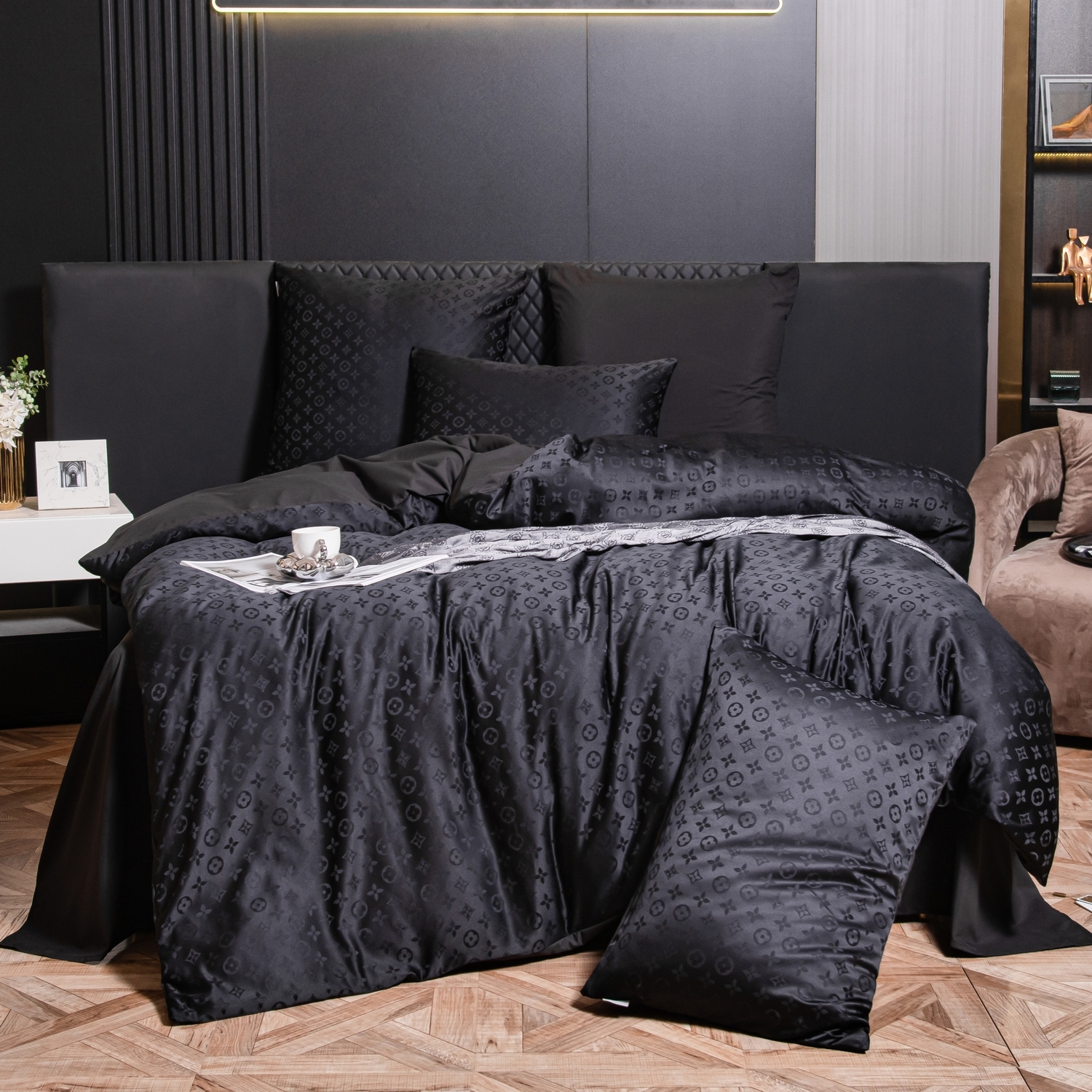 - Пододеяльник с разных сторон разной ткани: верх - жаккард, низ-сатин.