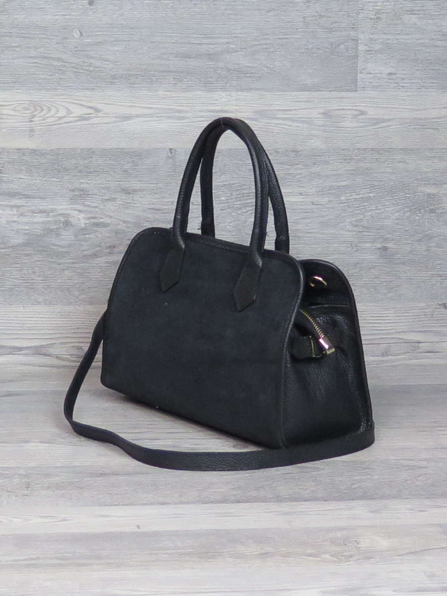 Сумочка закрывается на молнию, дно имеет металлические ножки.