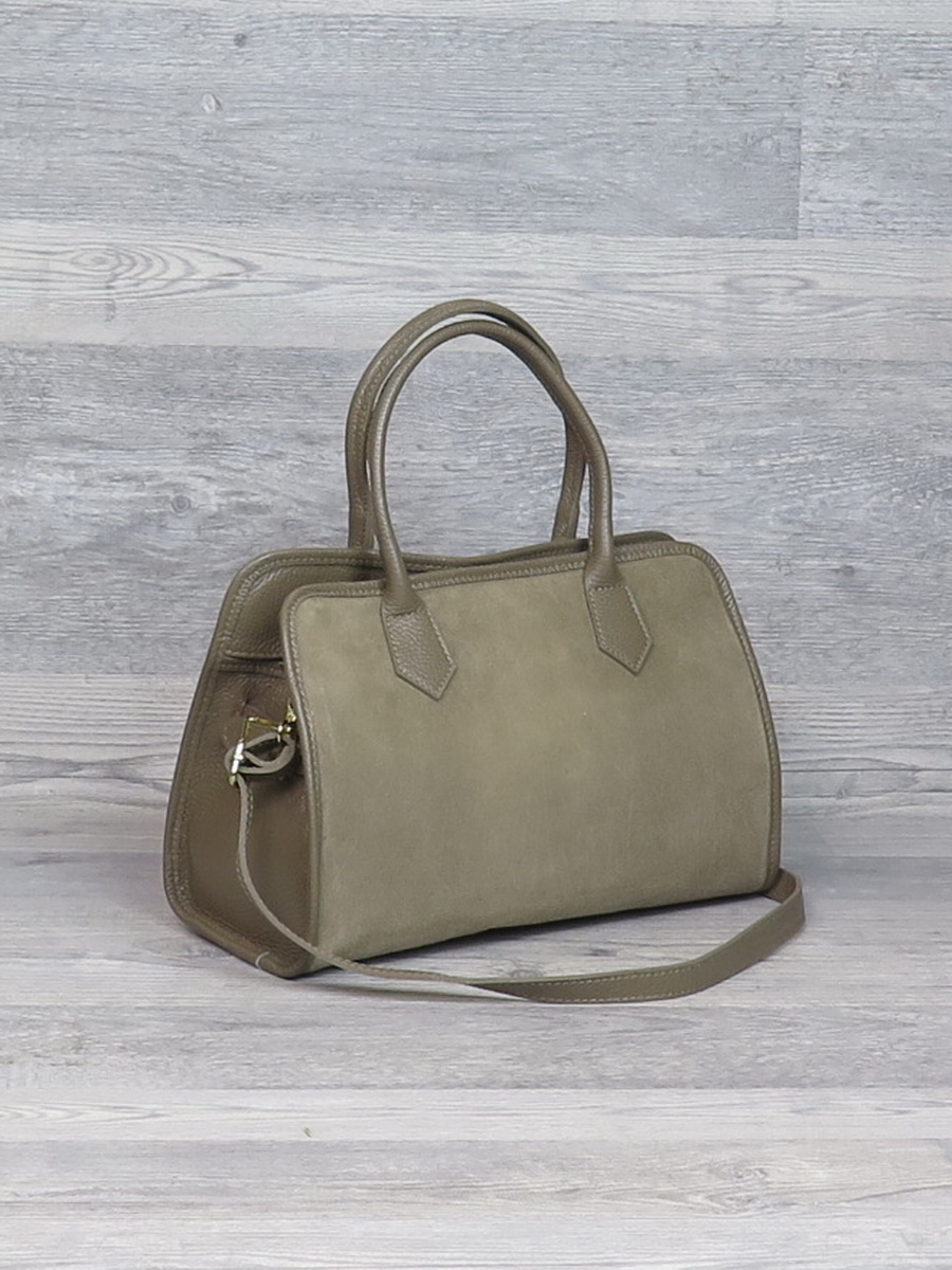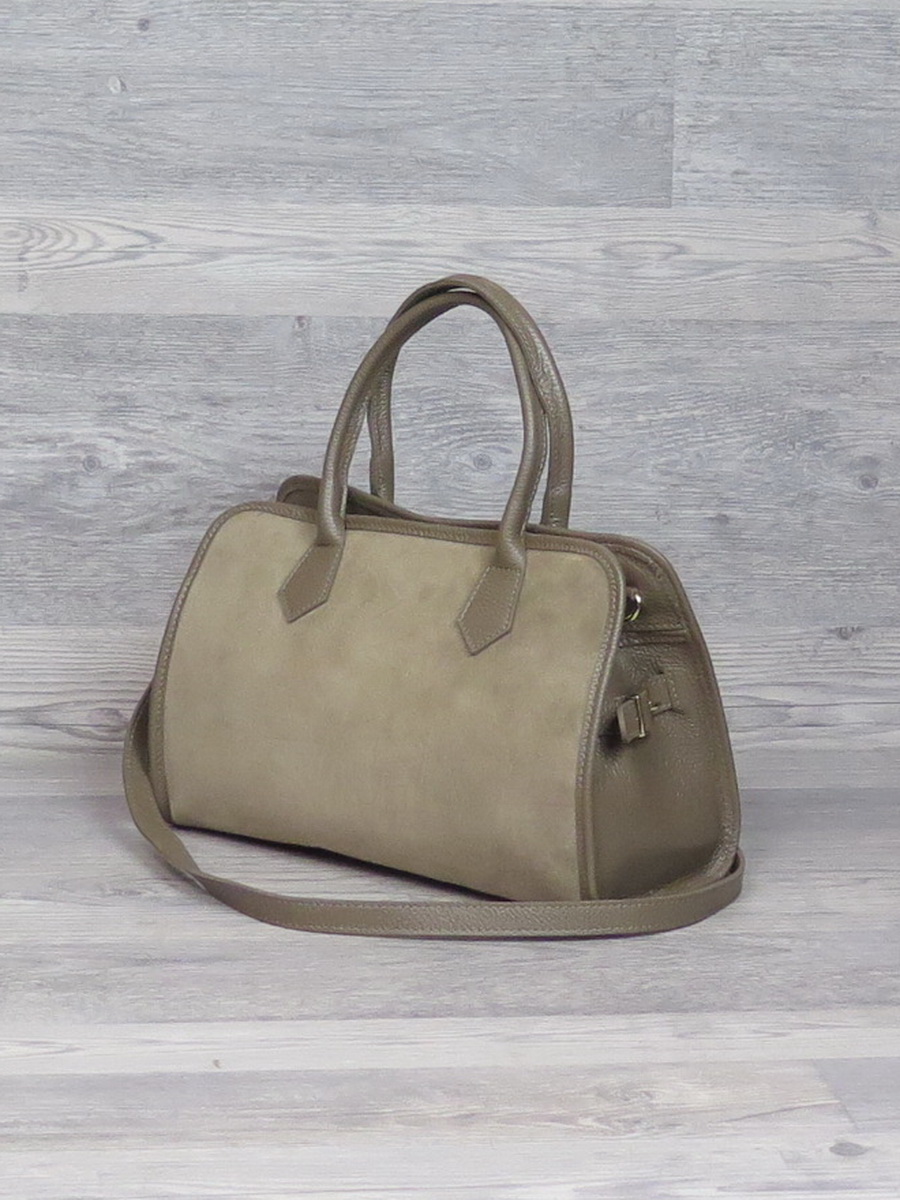 Сумочка закрывается на молнию, дно имеет металлические ножки.