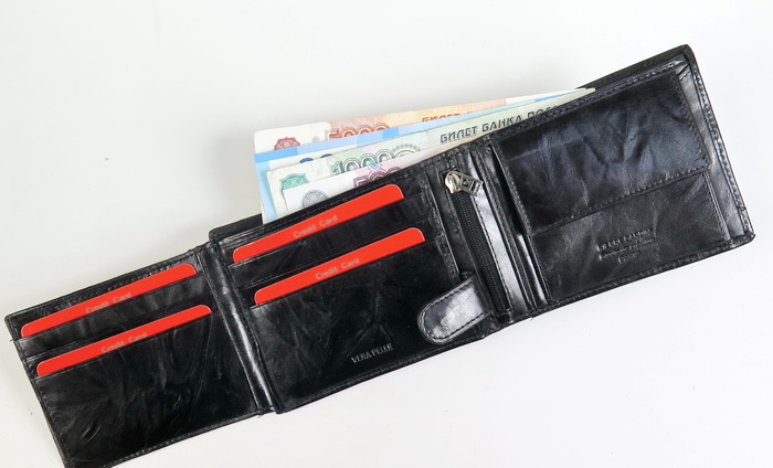 Внутри: 2 отделения для купюр.
