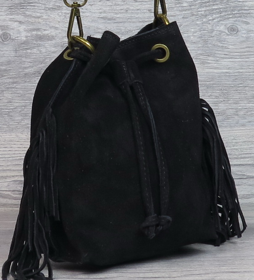 Сумочка закрывается на магнитную клипсу+ замшевый шнурок.