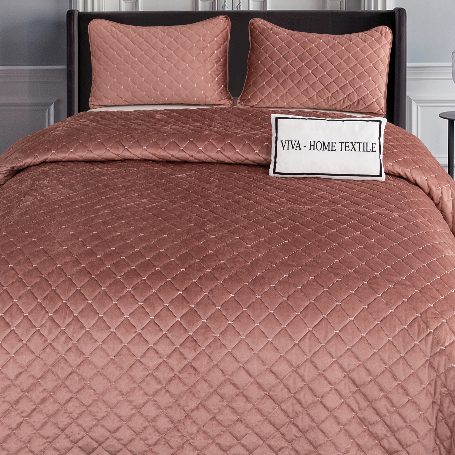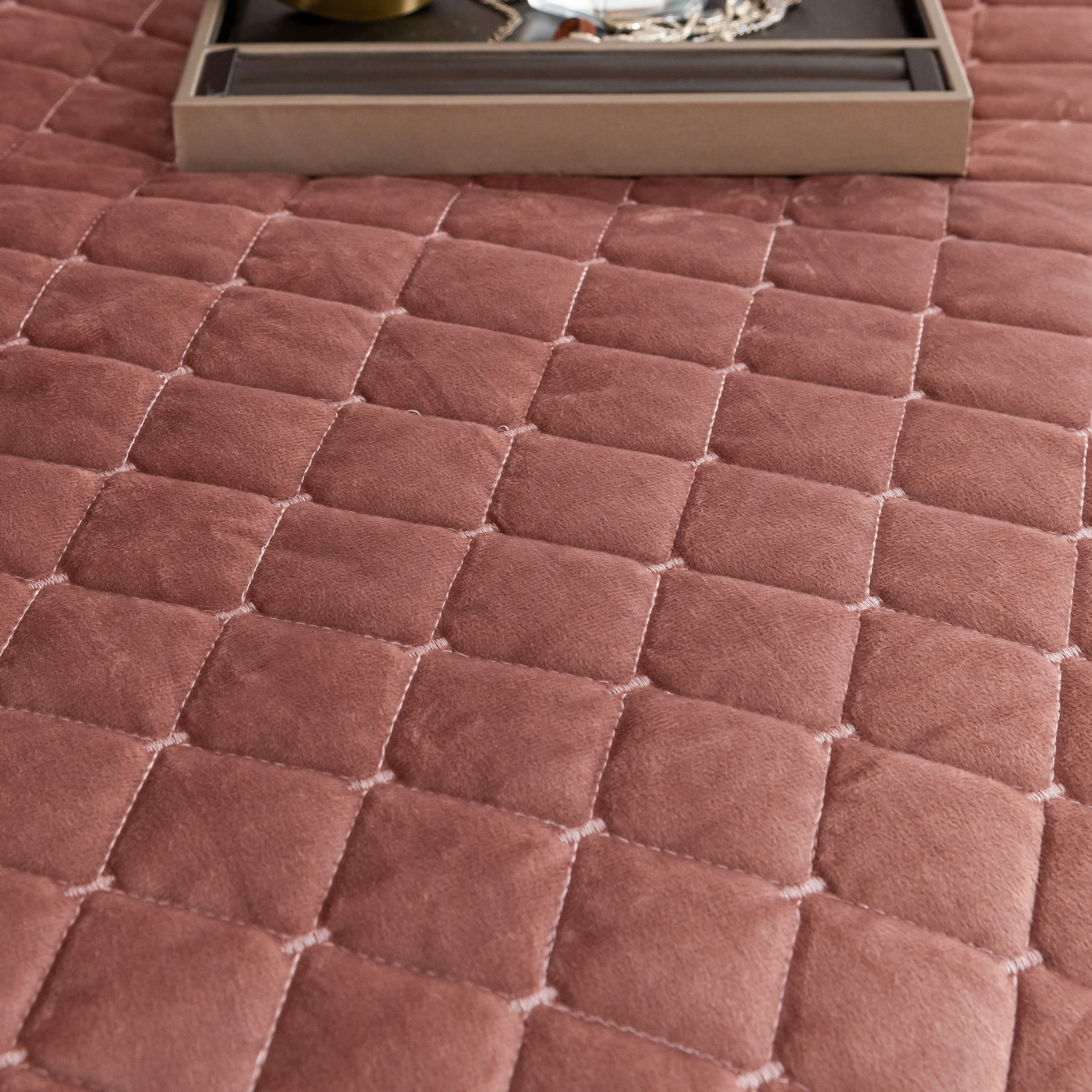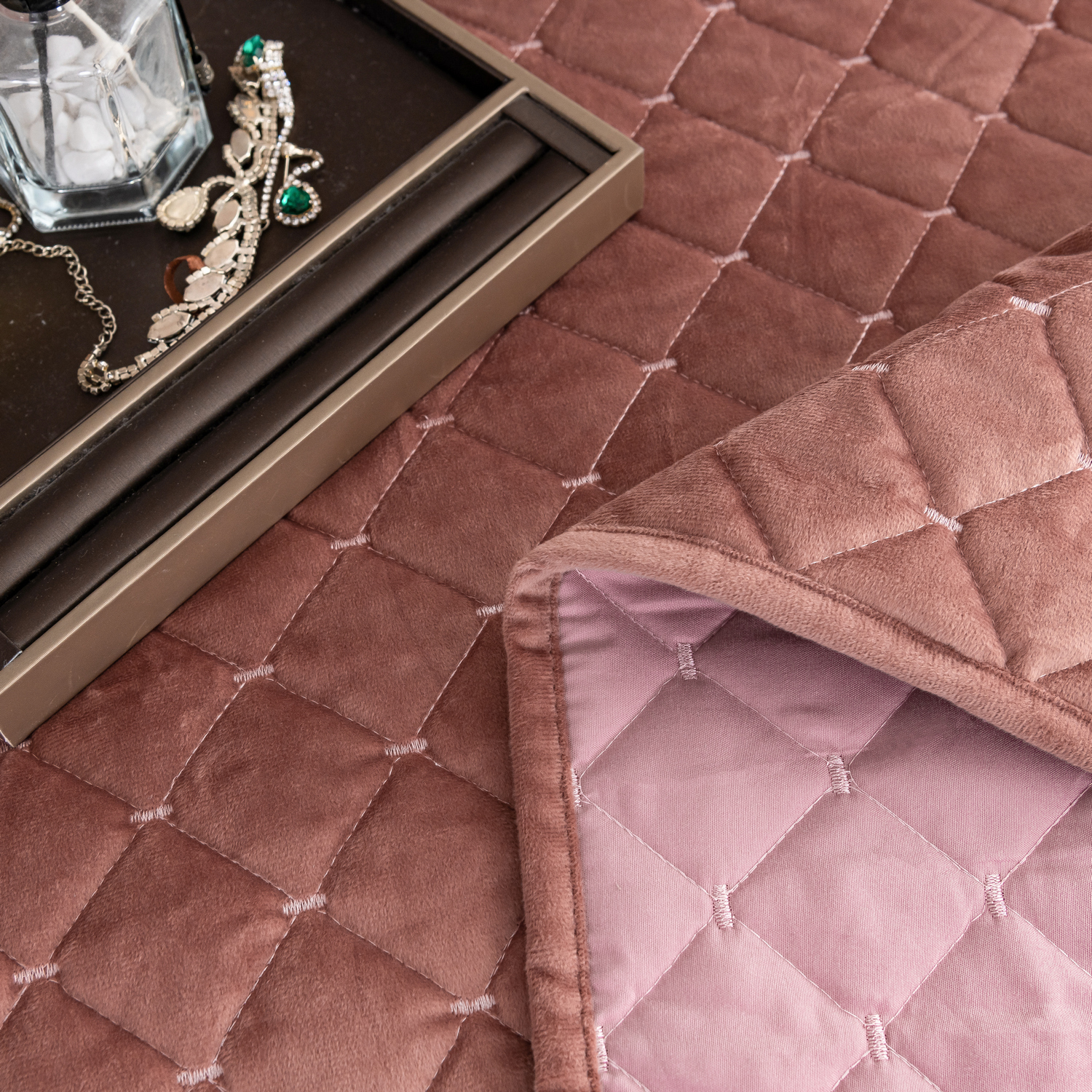 Ромбовидный узор на покрывале выполнен с использованием термостежки, что придаёт изделию особую изысканность и подчёркивает элегантность интерьера.