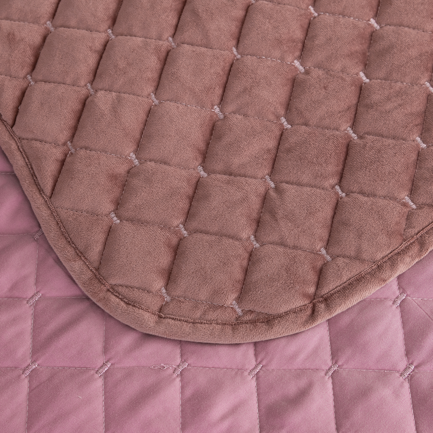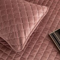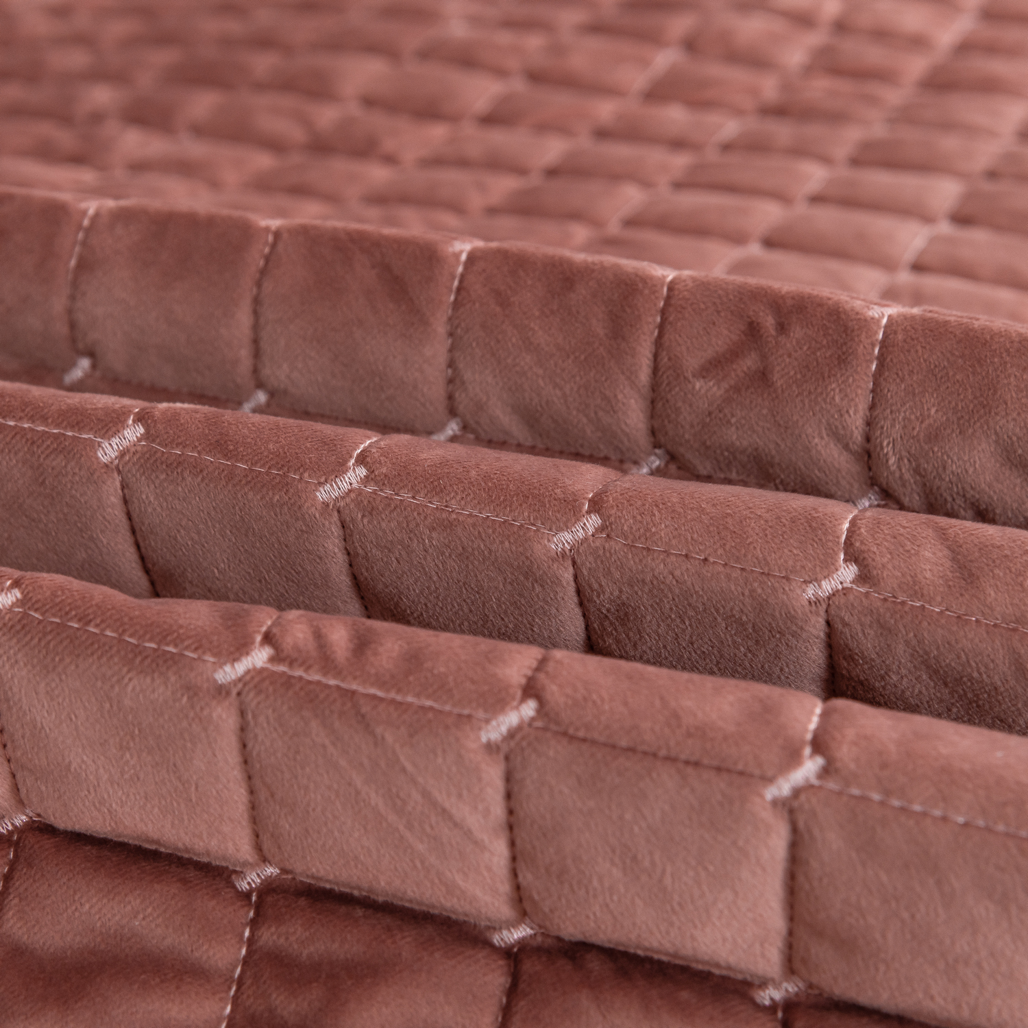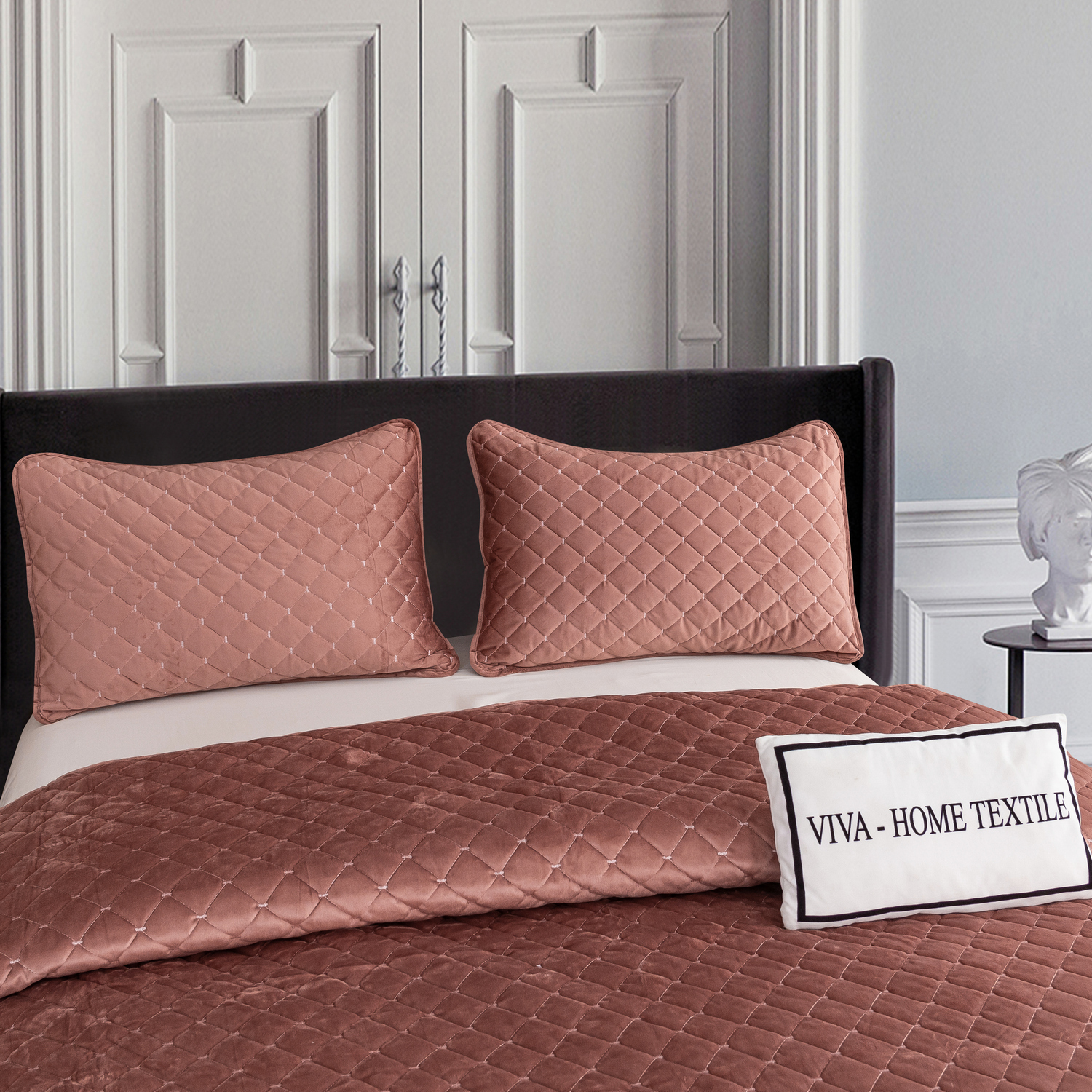 Ромбовидный узор на покрывале выполнен с использованием термостежки, что придаёт изделию особую изысканность и подчёркивает элегантность интерьера.
