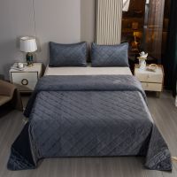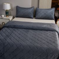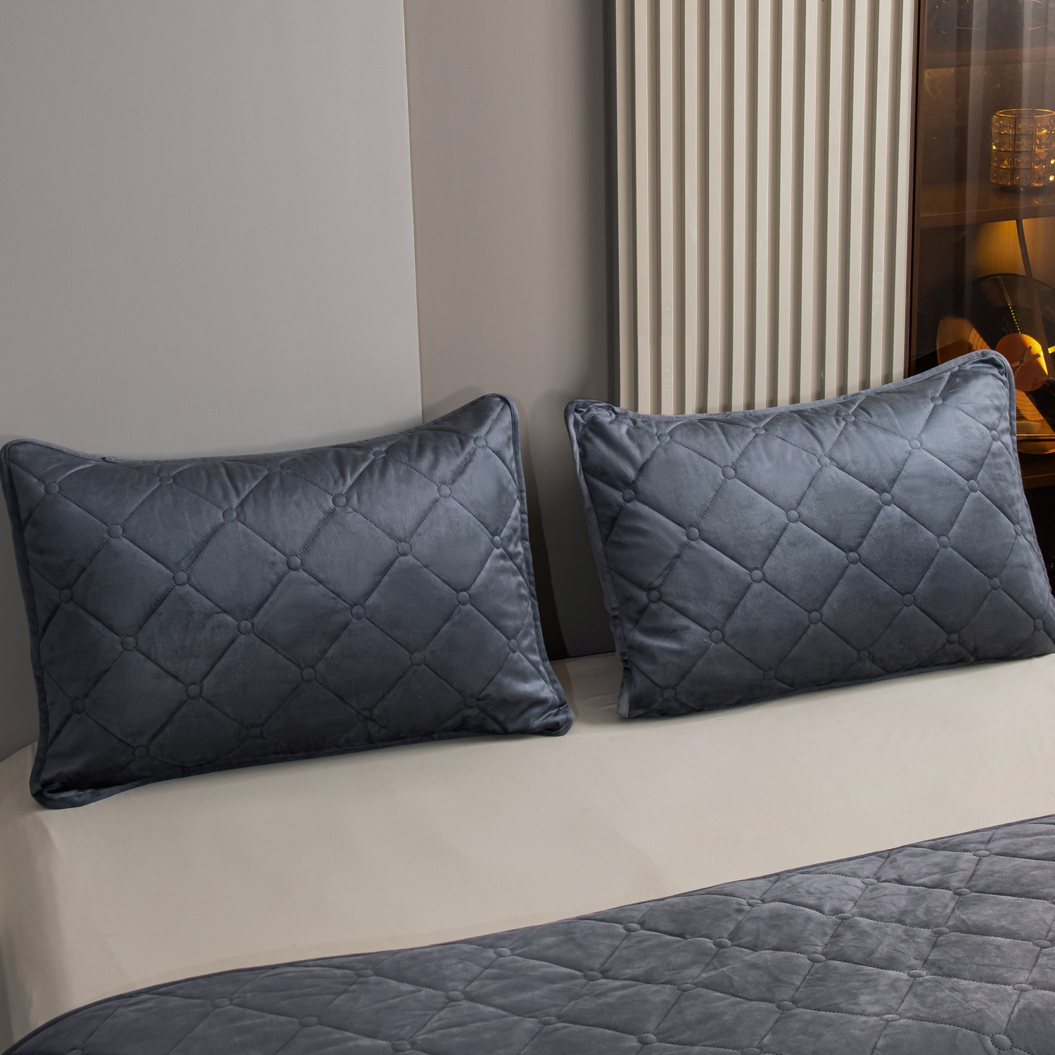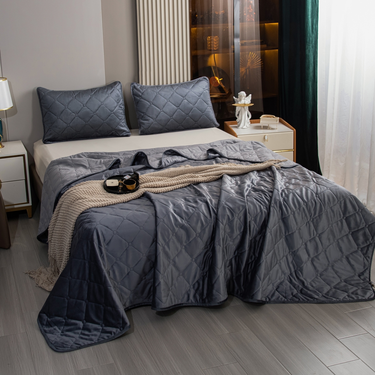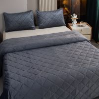 Ромбовидный узор на покрывале выполнен с использованием термостежки, что придаёт изделию особую изысканность и подчёркивает элегантность интерьера.