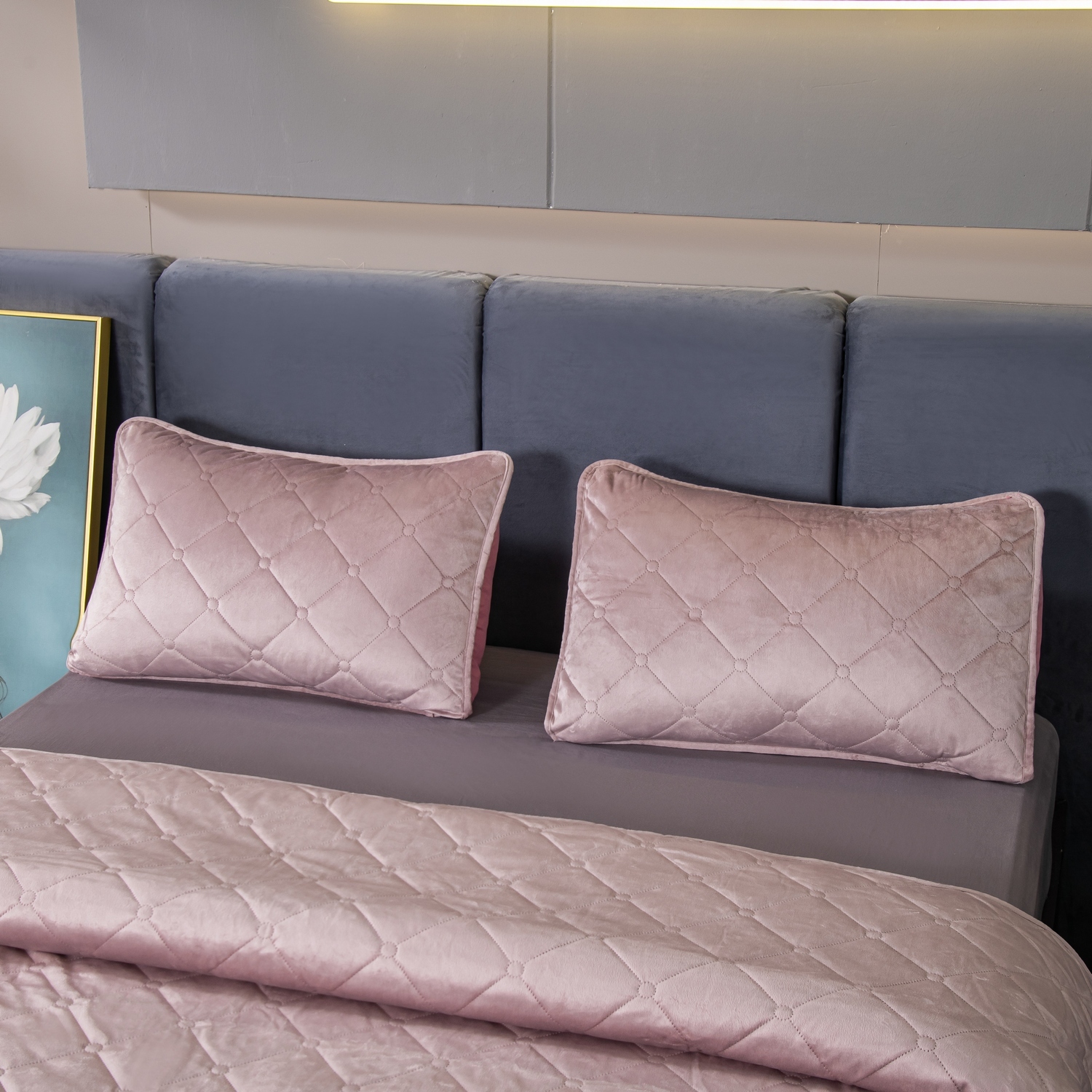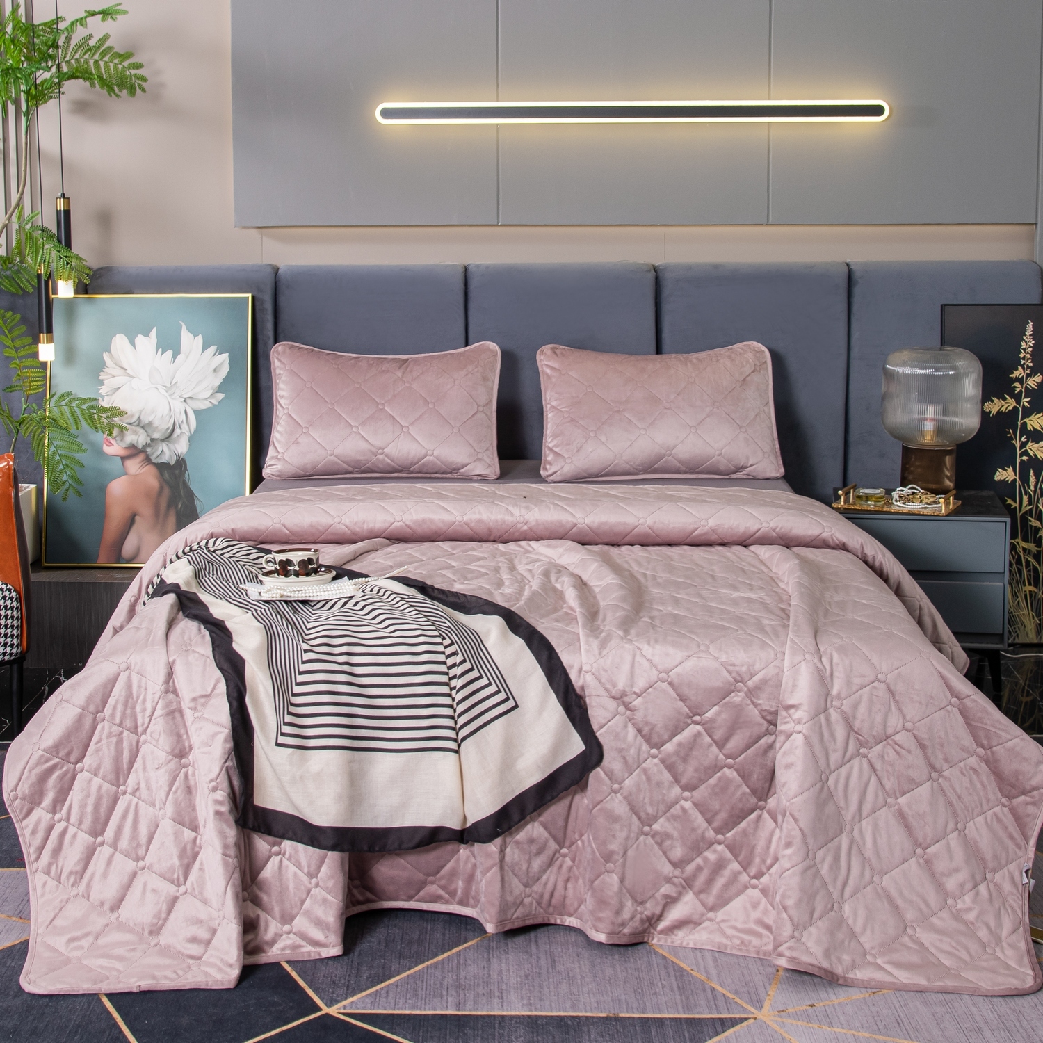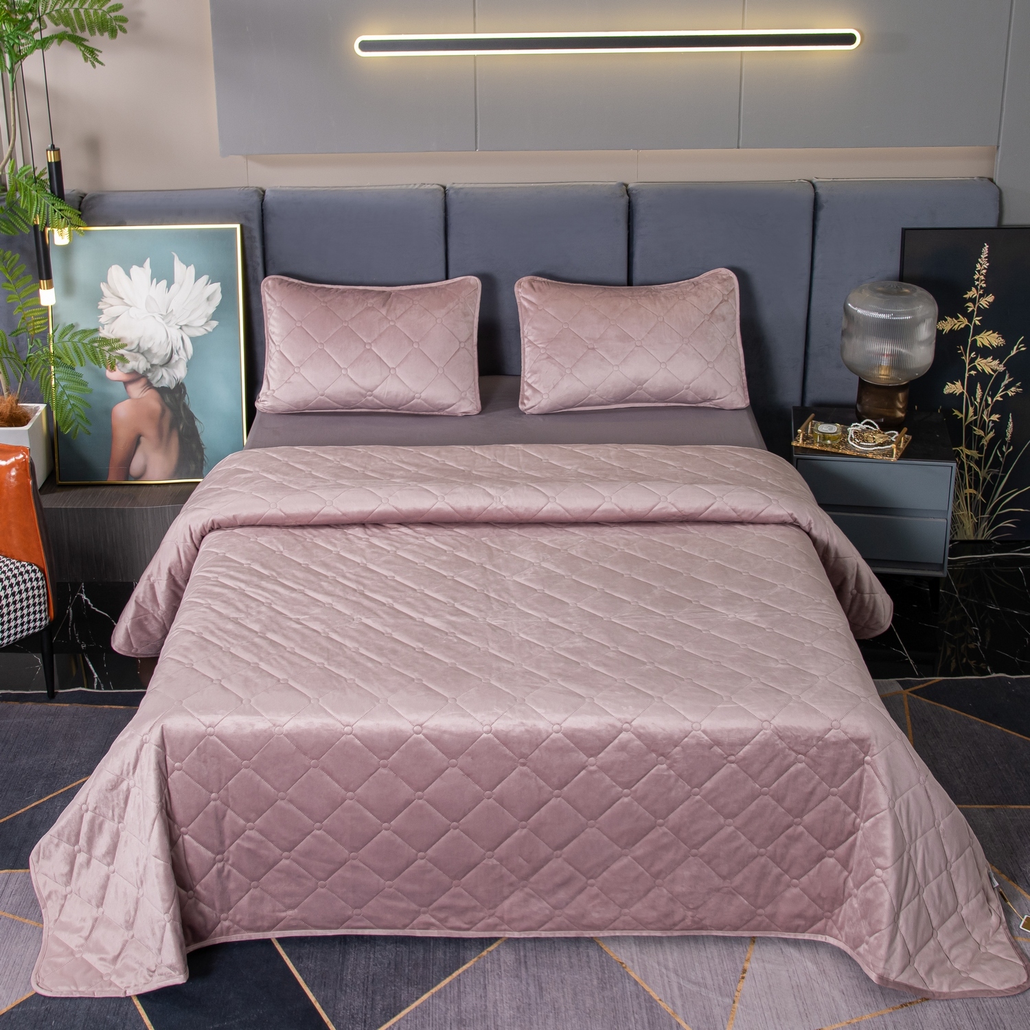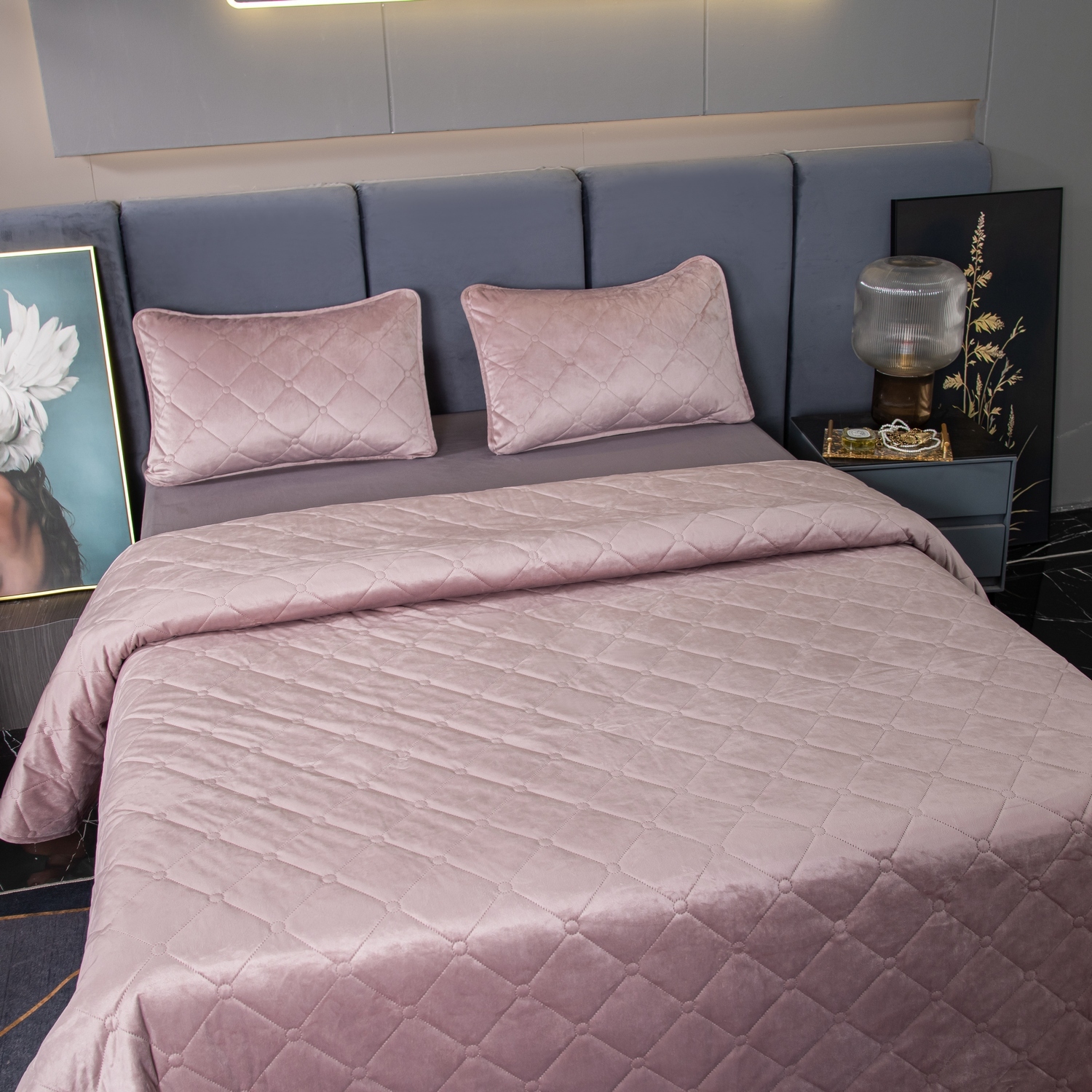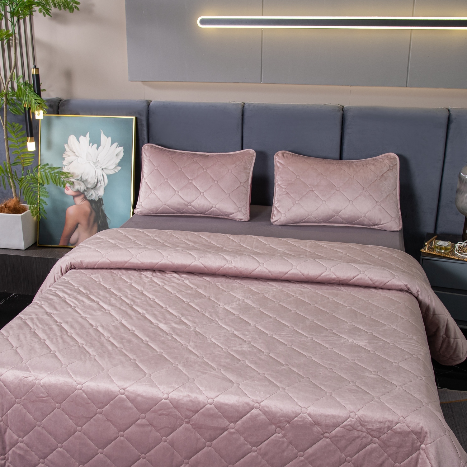 Ромбовидный узор на покрывале выполнен с использованием термостежки, что придаёт изделию особую изысканность и подчёркивает элегантность интерьера.